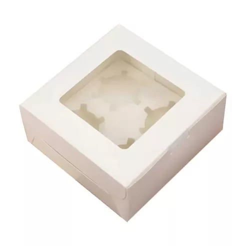 Caja Porta Cupcake de 4 Cavidades 16 x 16 x 7.5 Centimetros Blanco MASTER CHEF 0761104