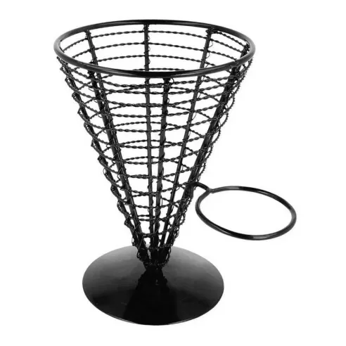 Diseñado de alta calidad, el soporte de canasta cónica de alimentos es una opción elegante para exhibir y servir aperitivos y otros alimentos con los dedos en su restaurante, el evento de catering o fiesta de celebración. Perfecto para las patatas fritas, marinara mozzarella y otras golosinas fritas.
