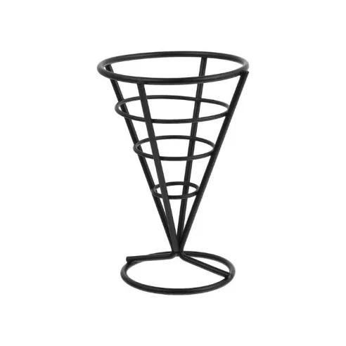 Diseñado de alta calidad, el soporte de canasta cónica de alimentos es una opción elegante para exhibir y servir aperitivos y otros alimentos con los dedos en su restaurante, el evento de catering o fiesta de celebración. Puede tomar aperitivos a un nuevo nivel cuando se les presta servicio en esta canasta cónica atractiva perfecta para las patatas fritas, marinara mozzarella y otras golosinas fritas.