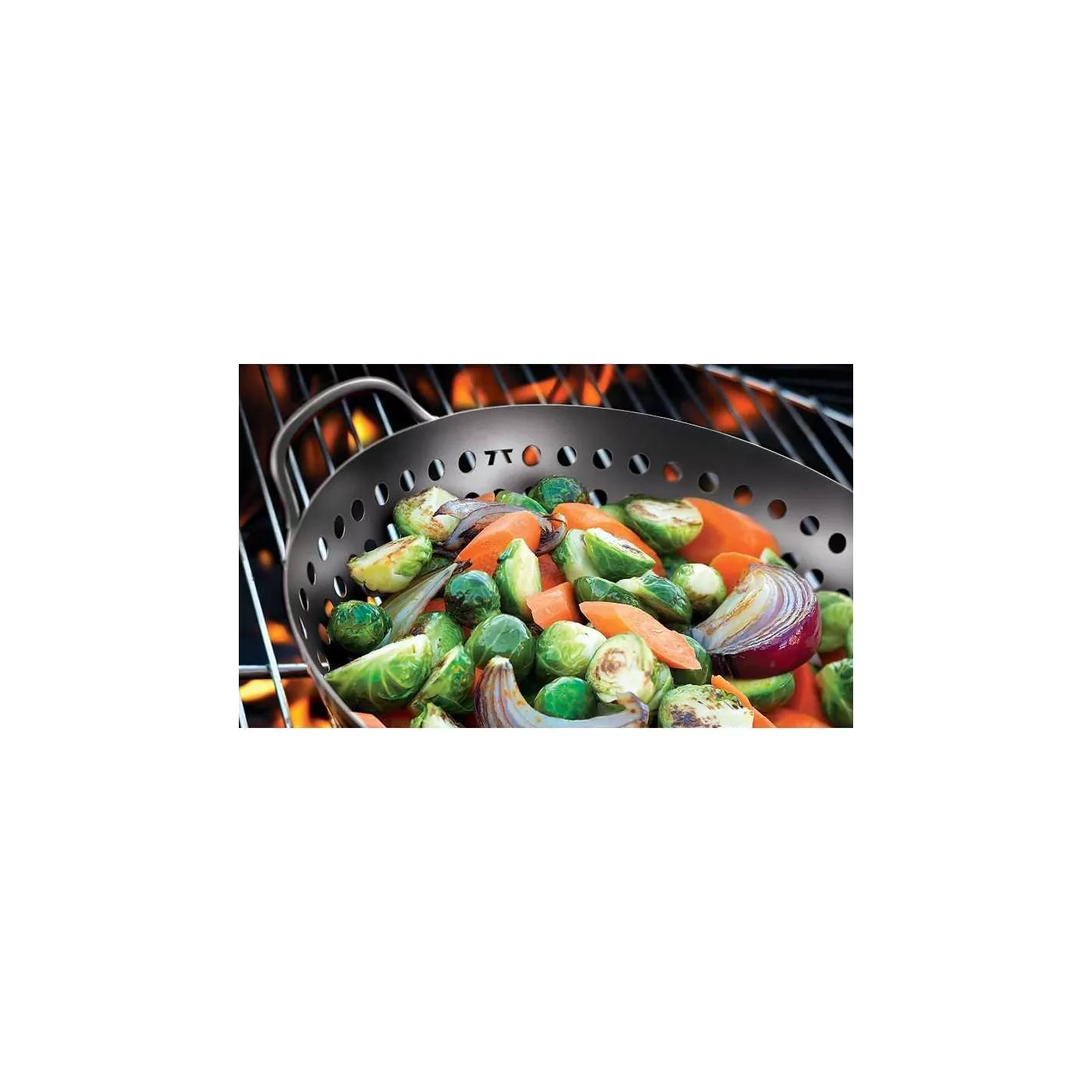 La superficie libre de PTFE/PFOA antiadherente de alta calidad de esta canasta de buen tamaño, ofrece una cocción segura y fácil limpieza, y está diseñado para soportar temperaturas extremas. La superficie perforada para asar del wok realza los sabores naturales de los alimentos, sin dejar que las carnes los mariscos o las verduras caen a través de las rejillas de la parrilla.