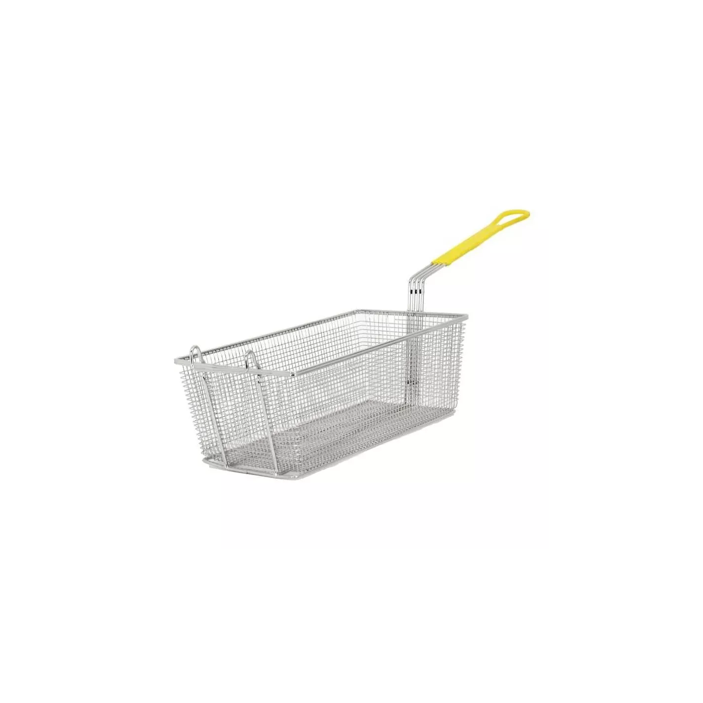 Ya sea que esté friendo, blanqueando o hirviendo, la cesta de freír con mango amarillo 16-3/4 x 8-3/4 pulgadas es una excelente herramienta para el trabajo. Con una malla de alambre con soporte cruzado debajo, esta canasta para freír sostiene de forma segura los alimentos pesados sin deformarse. Gracias a su asa abierta de color amarilla, esta cesta de alevines proporciona un agarre cómodo, mientras que su gancho frontal permite colocarla en el costado de una sartén para drenar el exceso de aceite.
