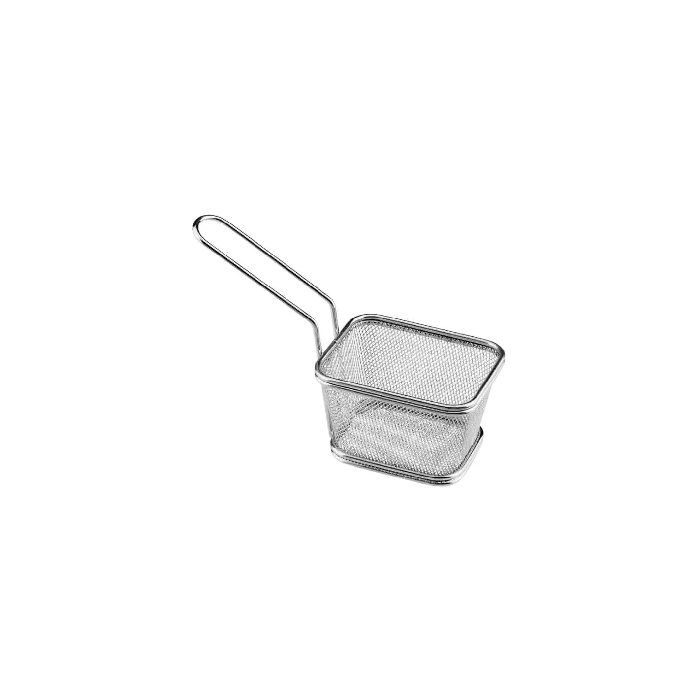 La mini canasta para snacks está fabricada en acero inoxidable y su diseño es apto para servir papas fritas u otros fritos de la cocina, tiene un asa para sostener y servir fácilmente. Canasta resistente a la corrosión y al uso constante.