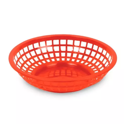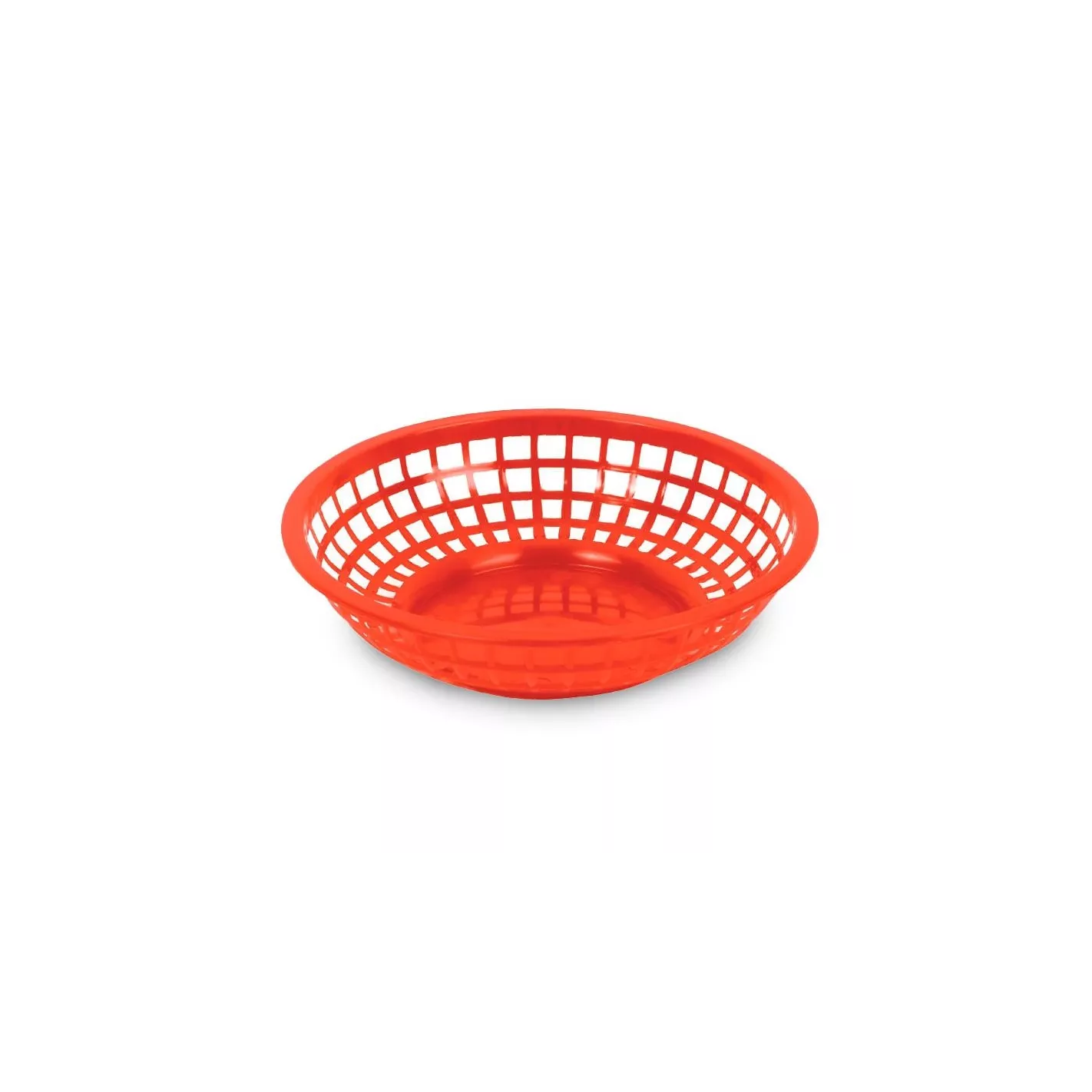 Cesta para la comida rápida, redonda, color rojo, hecha de polipropileno, apilable. Diseño para la preparación de la mesa, se puede utilizar para fiestas de cumpleaños, bautizos, etc. Cómodo y eficiente para acomodar adornos y forma útil para conservar comida frita. Apta para lavavajillas, en la rejilla superior.