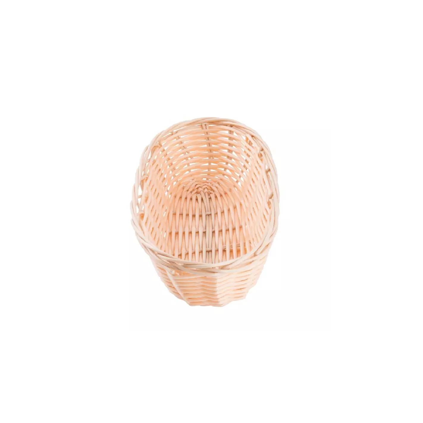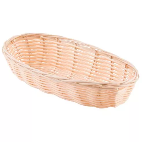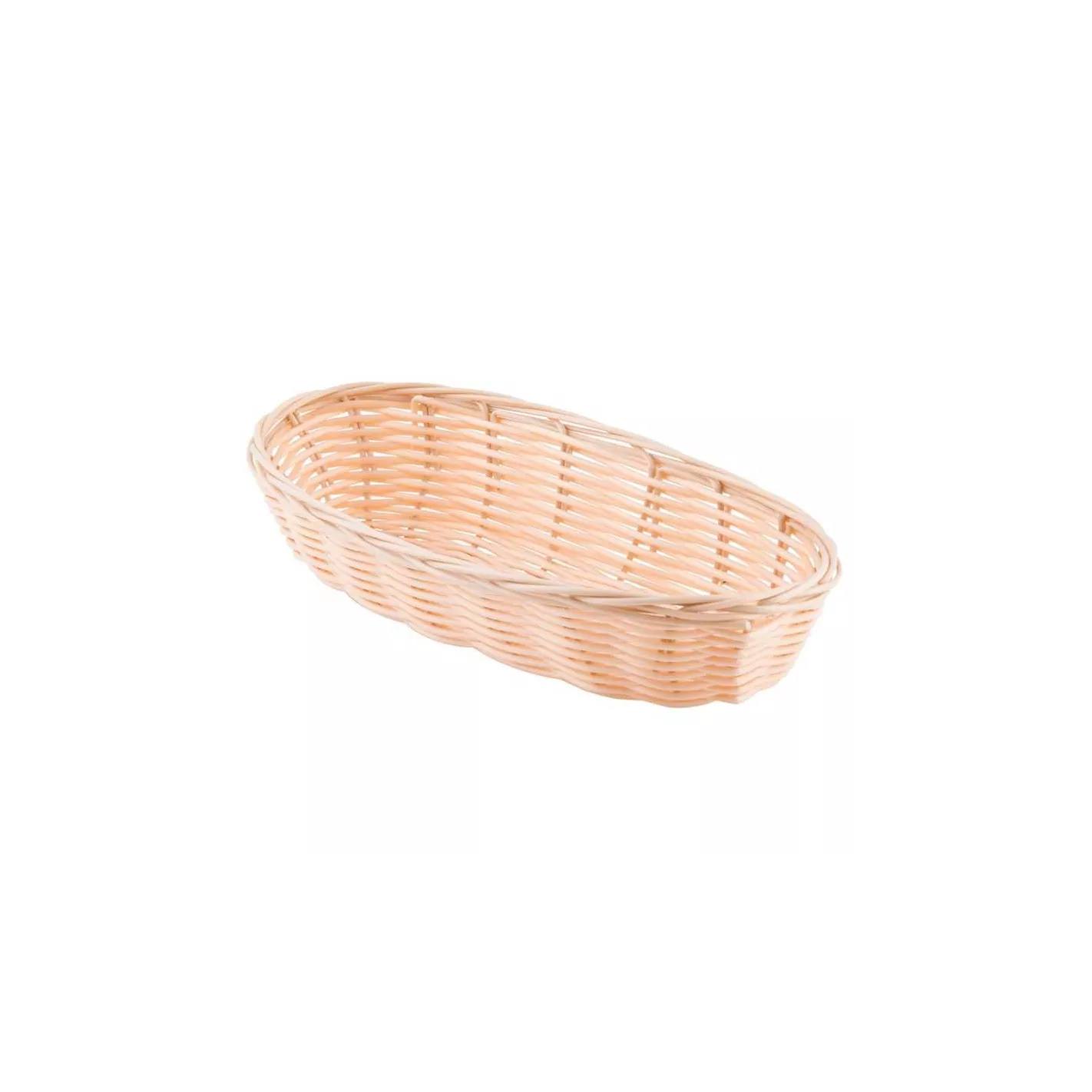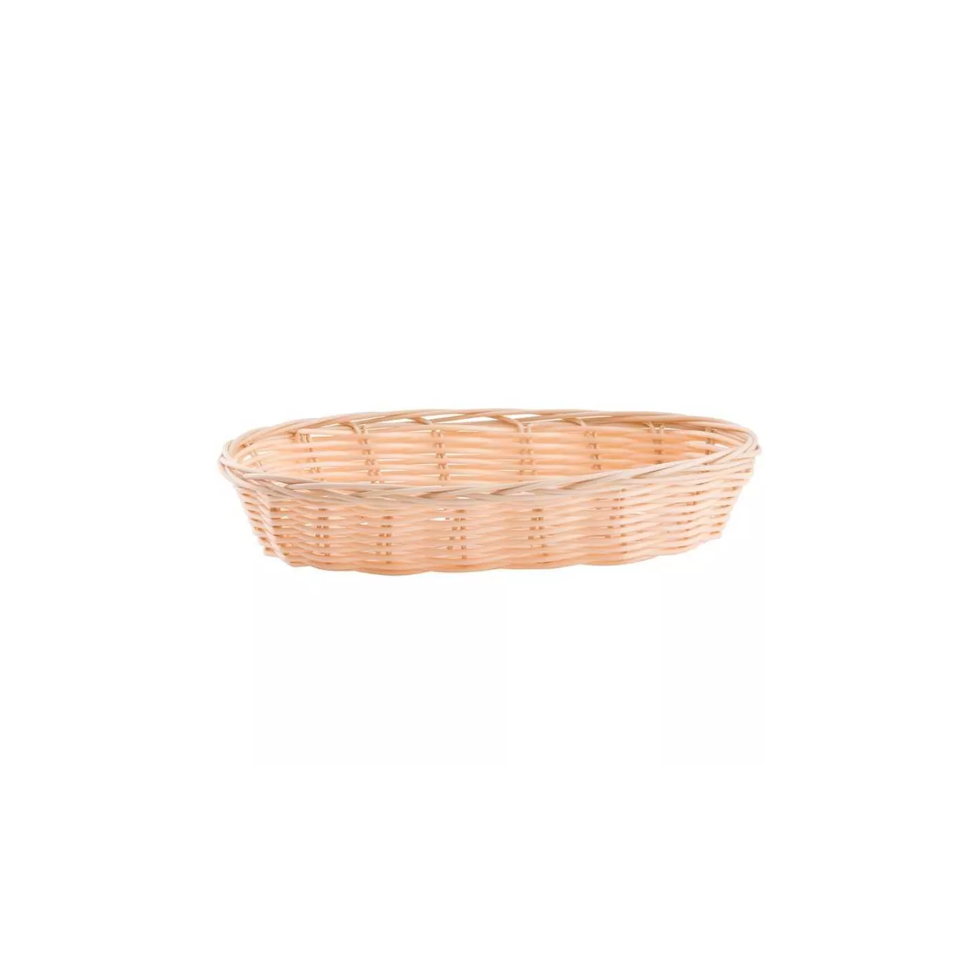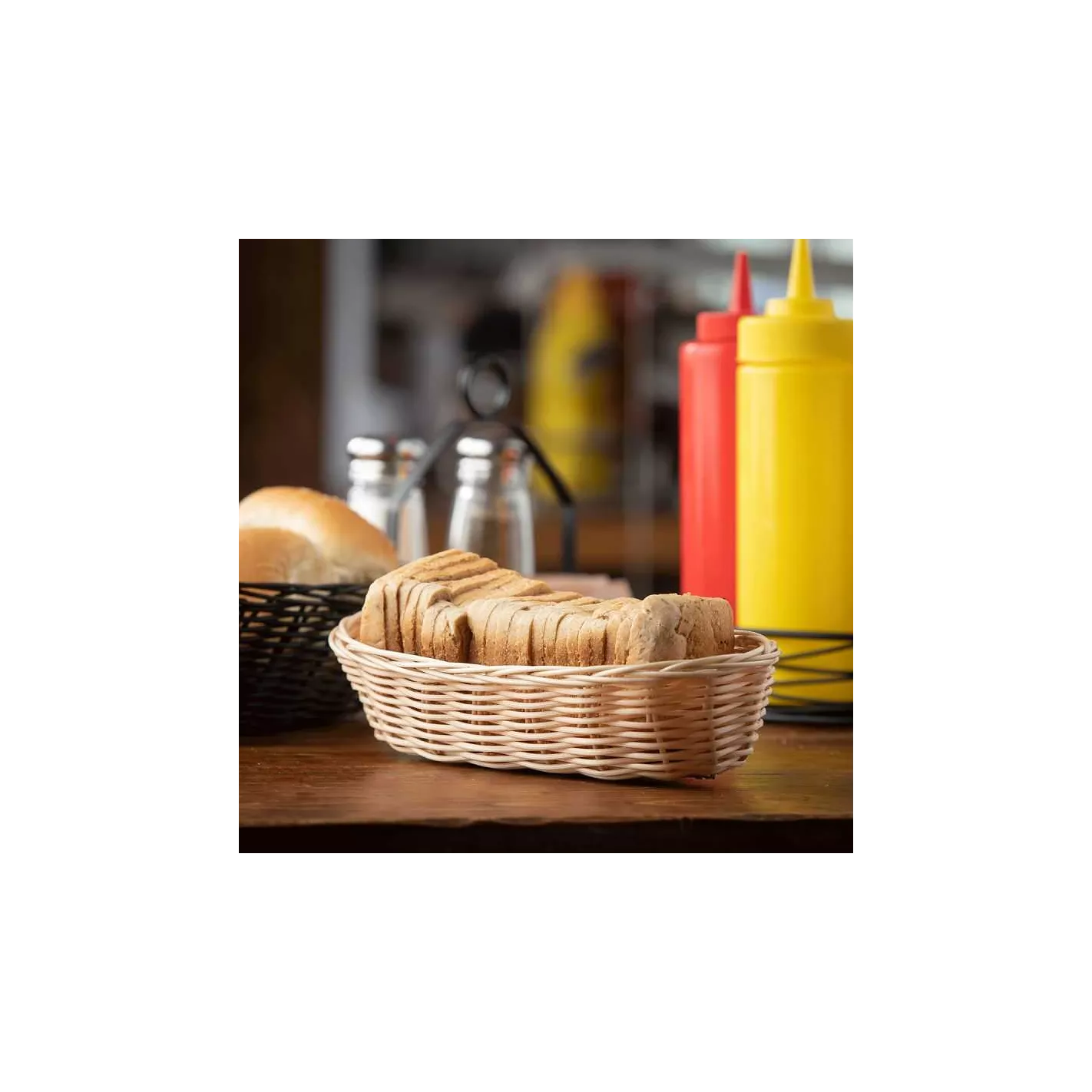 Esta atractiva canasta está hecha de alambre de acero con un revestimiento de polipropileno, entretejidos para imitar la apariencia del ratán para una apariencia de la granja a la mesa que seguramente será un éxito entre los invitados de su restaurante, bar o cafetería. ¡una construcción duradera perfecta para servir una variedad de refrigerios y entrantes! Esta canasta está diseñada para brindar una calidad superior para exhibir y servir alimentos, condimentos o utensilios. Además, la construcción suave no tiene bordes irregulares para un uso duradero y seguro en tu negocio.