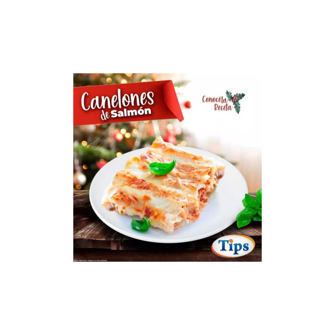 Rellene la pasta con el salmón formando los canelones, coloque en el refractario y cubra con el resto de salsa! Hornee en 350°F hasta que hierva.