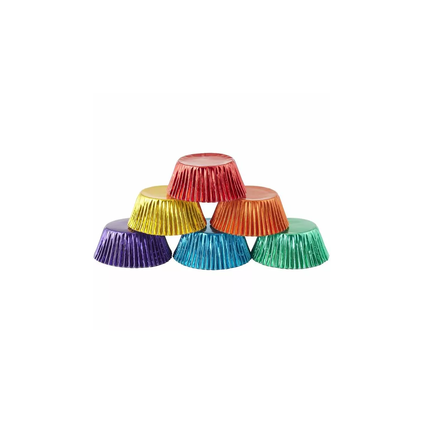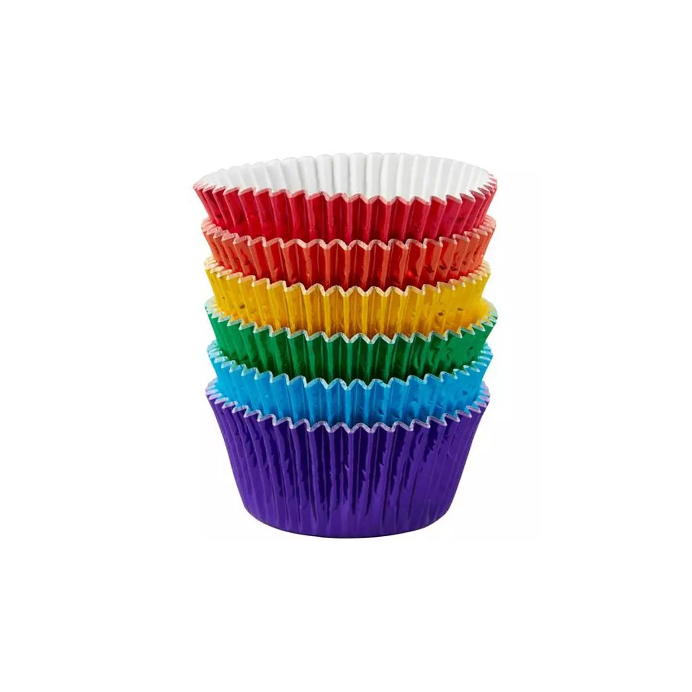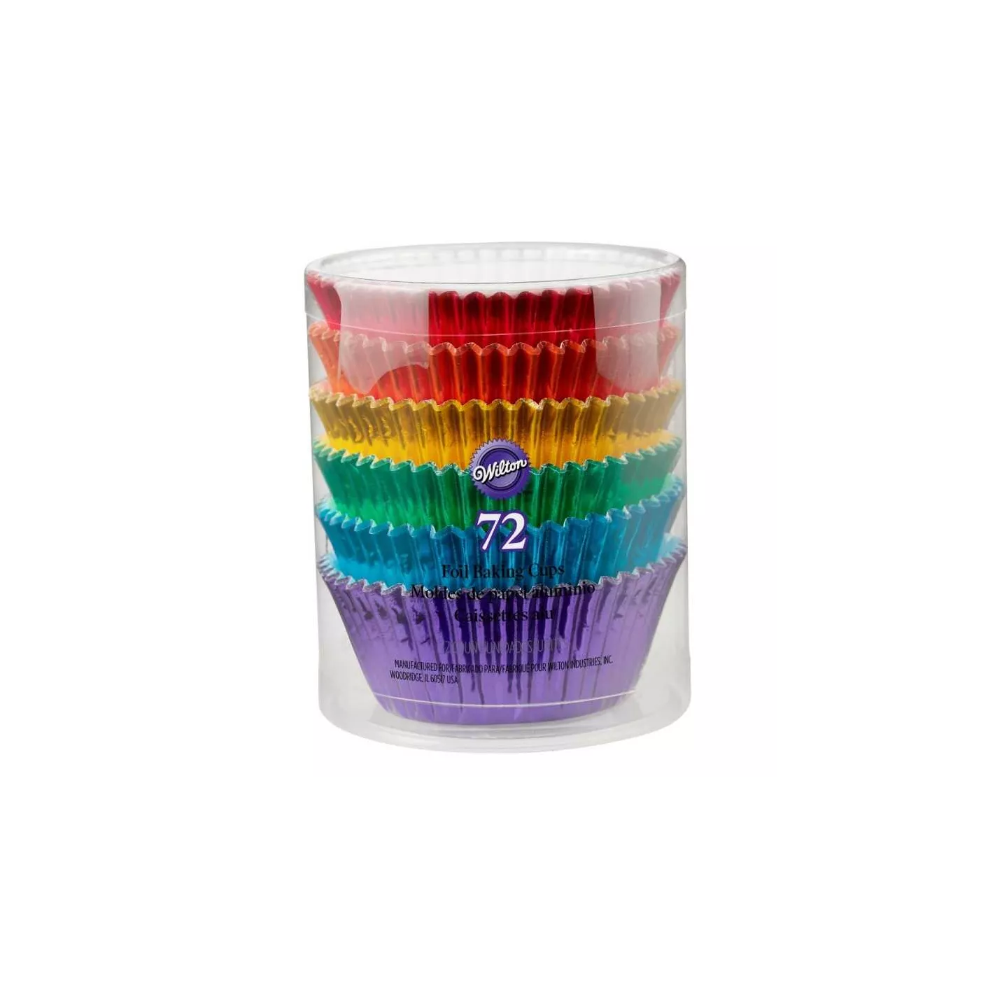 Hornee un arcoíris de coloridos muffins. Con 72 cápsulas de cupcake arcoíris puedes crear una variedad de dulces coloridos. Papel de aluminio forrado para mantener los revestimientos de cupcakes brillantes incluso después de hornear, perfecto para recetas de chocolate y masa rebozada. Incluye 12 cápsulas de cada color: rojas, naranjas, amarillas, verdes, azules y moradas. Incluye 72 cápsulas de 5 centímetros de diámetro.