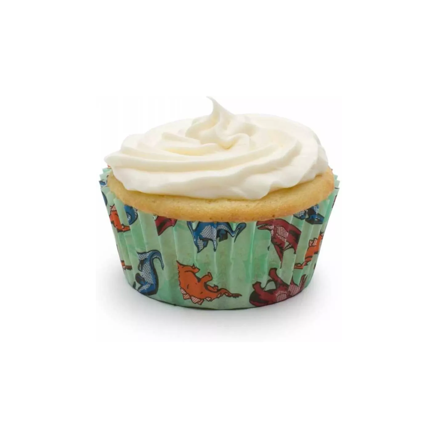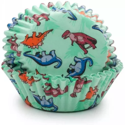 Haz tus cupcakes en estilo con este juego de capsulas de Fox Run Bake. Estas cápsulas de tamaño estándar están fabricadas de papel con un diseño de dinosaurio. Las cápsulas también están hechas de un material seguro para los alimentos. Lo mejor de todo, estas capsulas para hornear son desechables para una fácil y rápida limpieza. Diámetro de la cápsula: 5 centímetros, paquete incluye 50 unidades.
