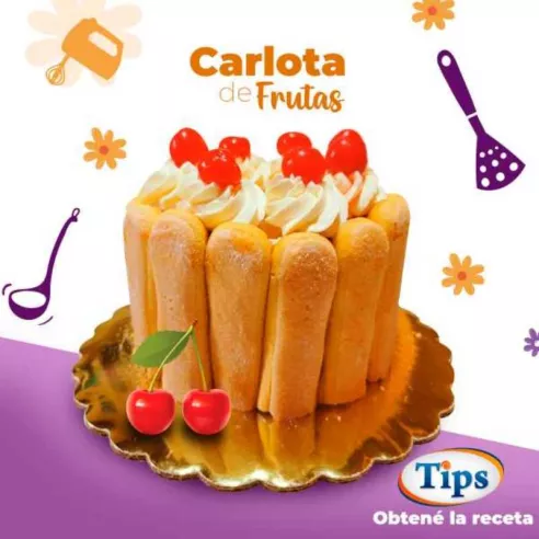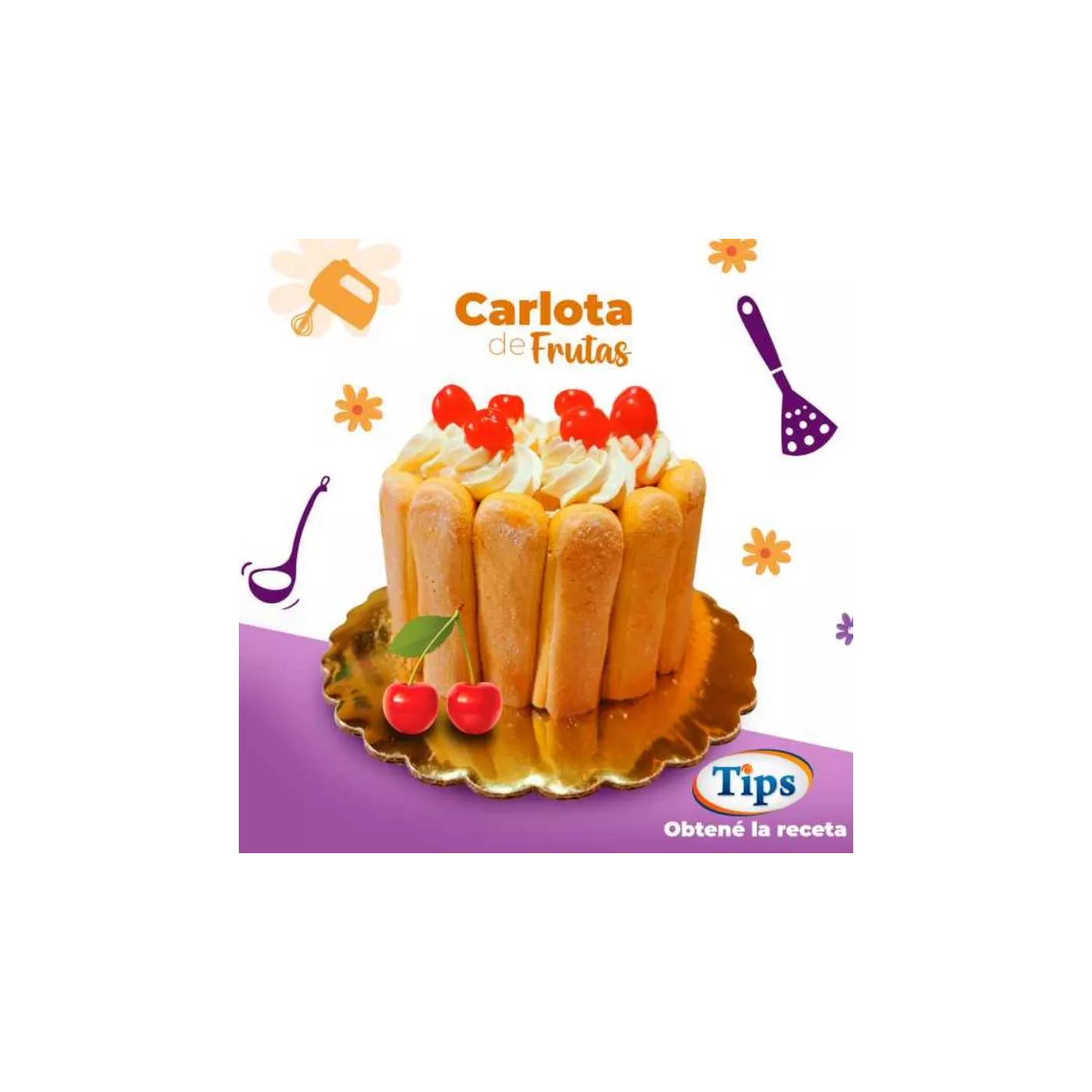4.Para el montaje humedecer los dedos por el lado liso colocar alrededor del aro y el fondo coloque una capa de crema, el cóctel de frutas, tapar con dedos nuevamente crema y frutas tapar con plástico adhesivo dejar reposar 3 horas.