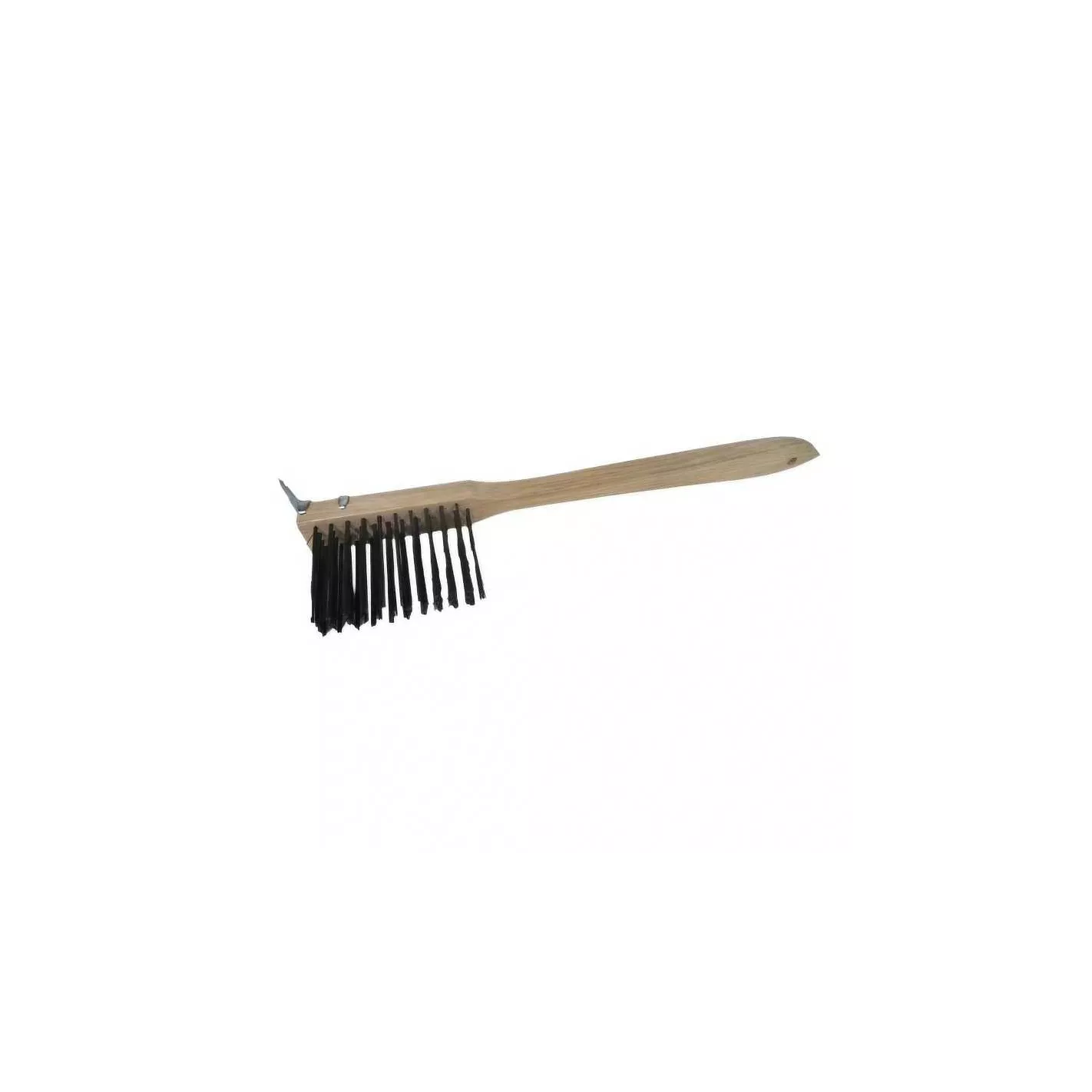 Debe cepillar los alimentos pegados a la parrilla cada vez que cocine a la parrilla, mientras la parrilla aún está caliente, y nuevamente antes de asar su próxima comida. Las cerdas del cepillo no dañarán las rejillas de cocción, pero durarán mucho tiempo. Son lo suficientemente suaves para usar en nuestras rejillas de cocción de hierro fundido recubiertas de porcelana. El cepillo tiene un raspador de metal en la cabeza para lugares particularmente difíciles.