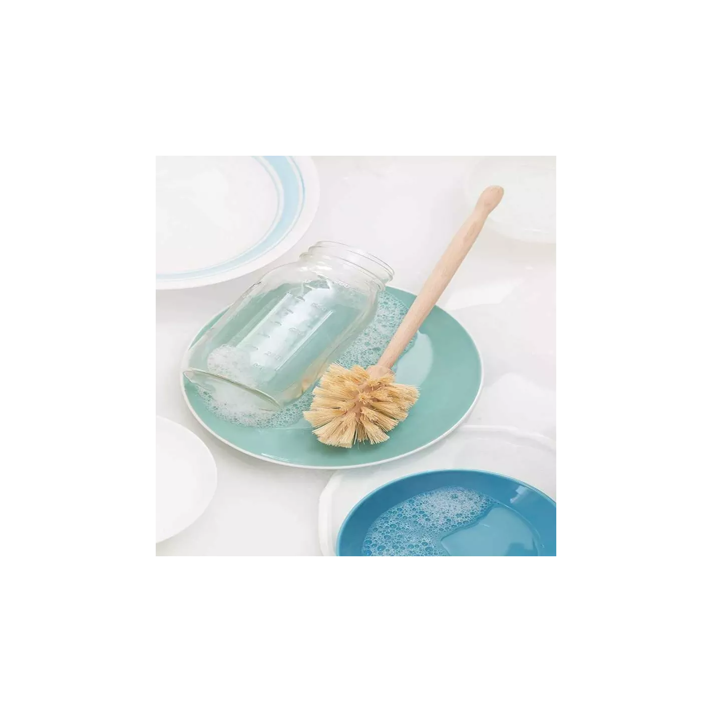 El cepillo para platos de fibra Tampico con mango de madera de haya sin tratar elimina fácilmente los restos de comida y la grasa de su cocina y artículos para el hogar. Las cerdas de fibra Tampico extrafuertes son lo suficientemente rígidas para un fregado resistente, pero lo suficientemente flexibles como para limpiar manchas en una variedad de superficies. Las cerdas totalmente naturales resisten altas temperaturas y conservan su forma con el tiempo. El mango largo y duradero de madera de haya no tratada llega fácilmente a las esquinas y grietas y el cabezal del cepillo redondeado es resistente al calor y seguro para usar con agua hirviendo. El cepillo mide 12 pulgadas de largo. Limpie las cerdas con agua tibia, seque con una toalla para eliminar el exceso de humedad y seque al aire con las cerdas hacia abajo para evitar daños a la madera.
