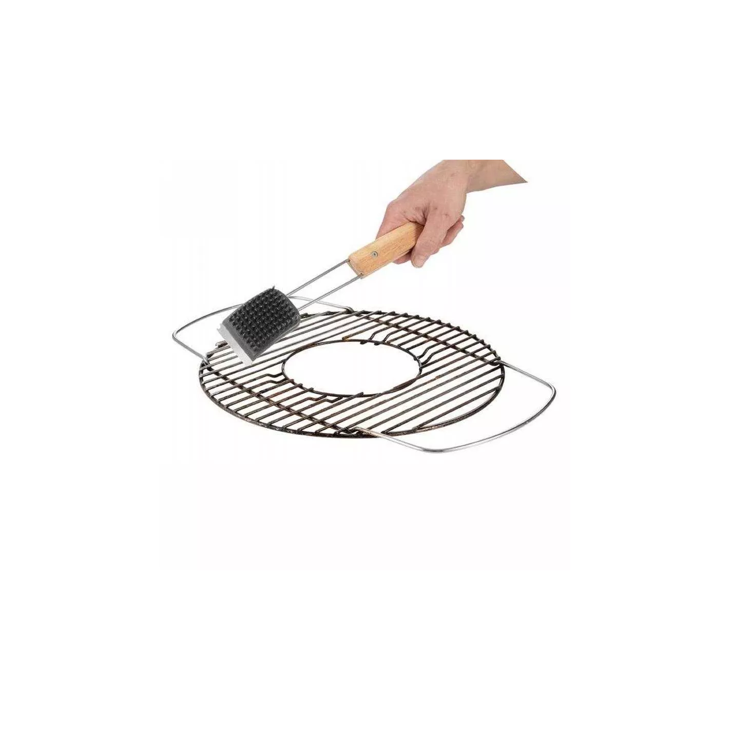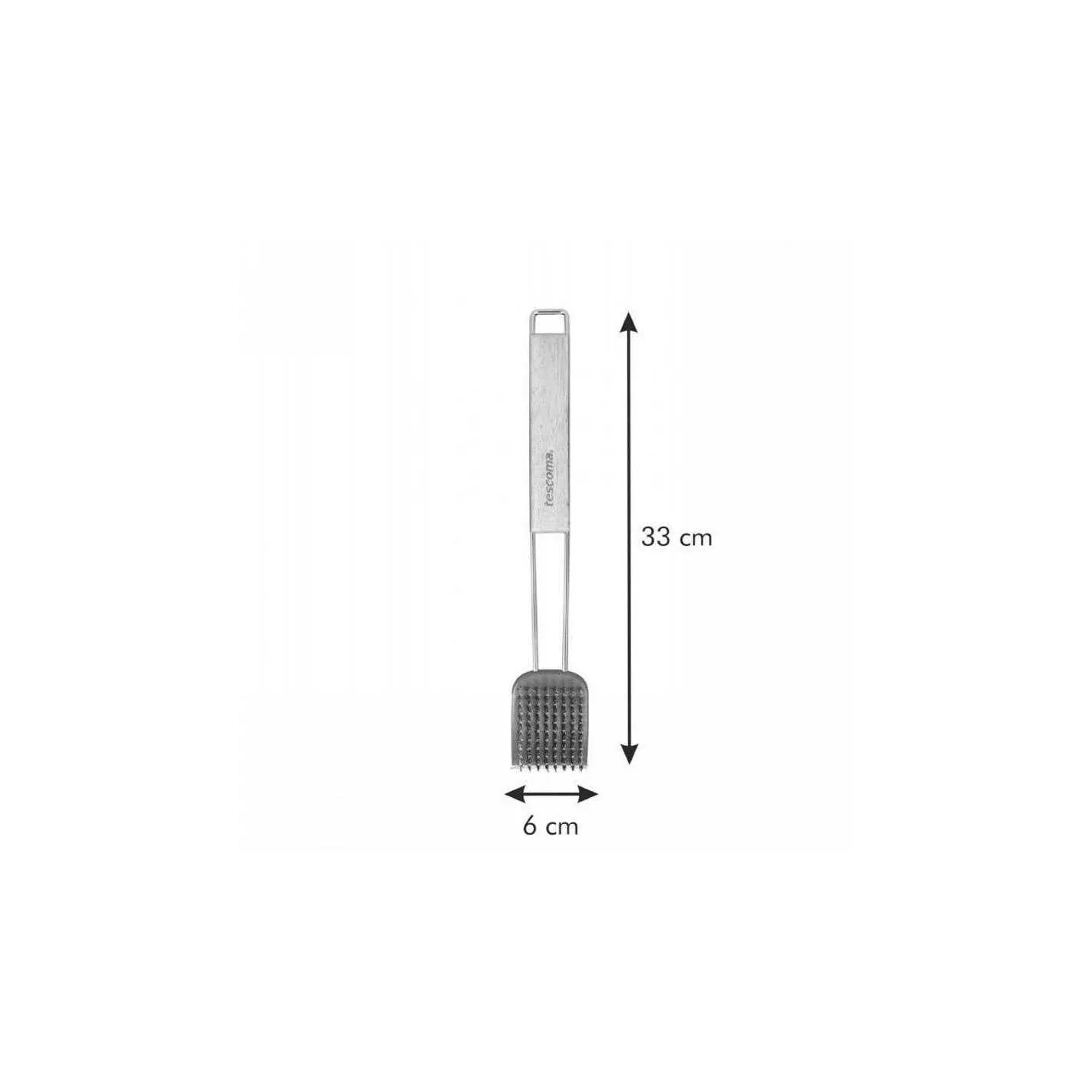 Que buena es la barbacoa, pero luego hay que limpiar la parrilla, con esos restos de carne quemada y aceite pegados al metal ... No te preocupes, para completar la línea de accesorios para barbacoa Privilege, ahora también hay un cepillo con cerdas de acero acero inoxidable, muy resistente para raspar sin esfuerzo todos los restos de comida de parrillas y barbacoas. Por un lado las cerdas, por otro una cuchilla afilada que sirve para raspar superficies lisas. Para permitirle llegar fácilmente a todas las partes de la barbacoa, el cepillo tiene un mango largo, hecho de madera de árbol de caucho. Dimensiones: largo 33 centímetros x ancho 5 centímetrosANCHO: CENTIMETROS = 5