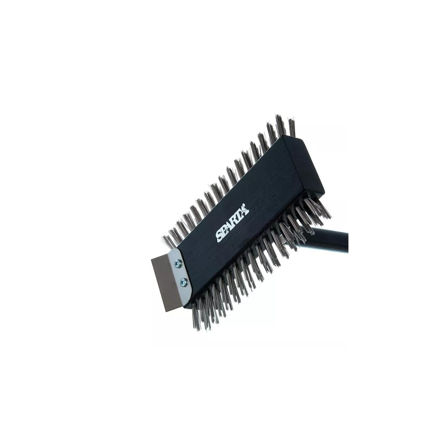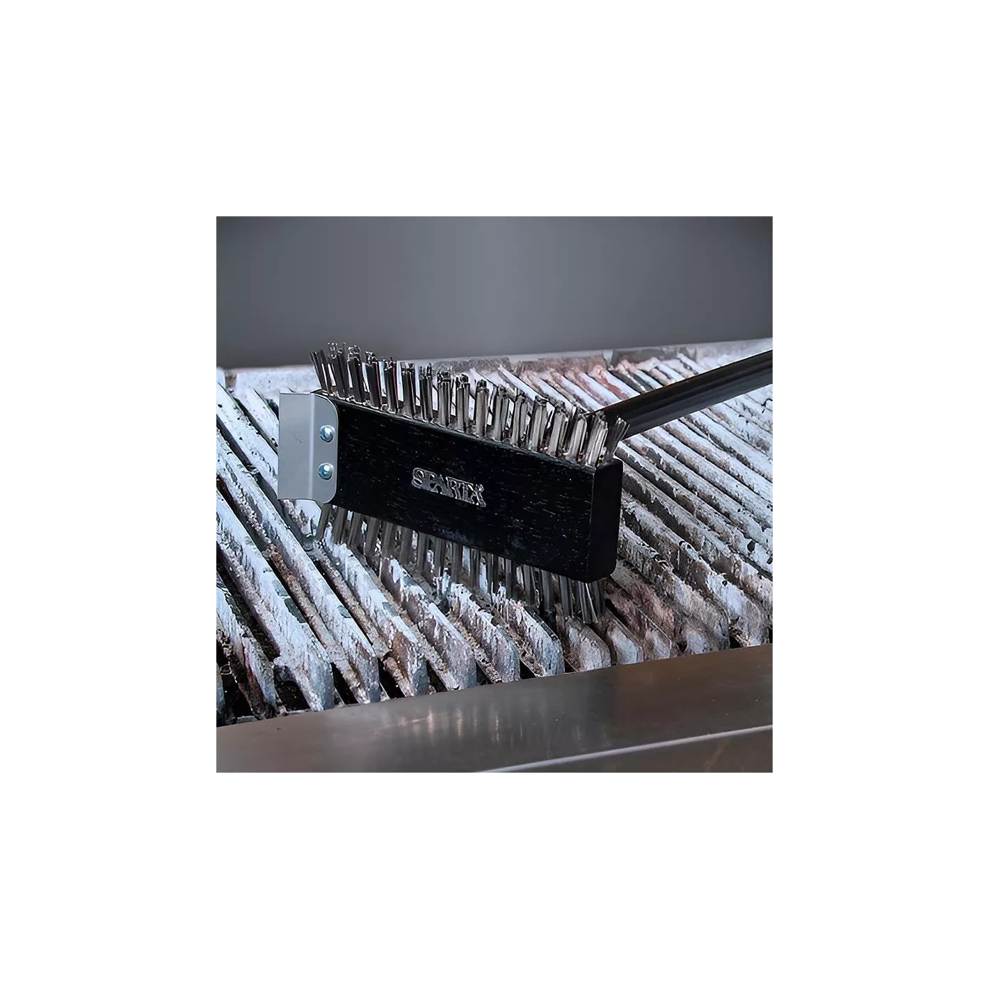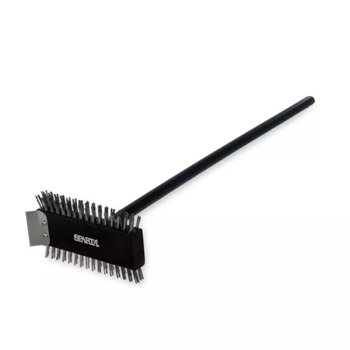 Las cerdas de metal de alta resistencia eliminan los depósitos de carbono, el óxido y la acumulación de alimentos quemados de los hornos y parrillas de alta temperatura. El raspador de acero inoxidable afloja los desechos para una limpieza más profunda. Wood Head: construido para durar incluso en las cocinas de restaurantes concurridos. Mango largo: acabado con mango largo y resistente de madera para mayor alcance