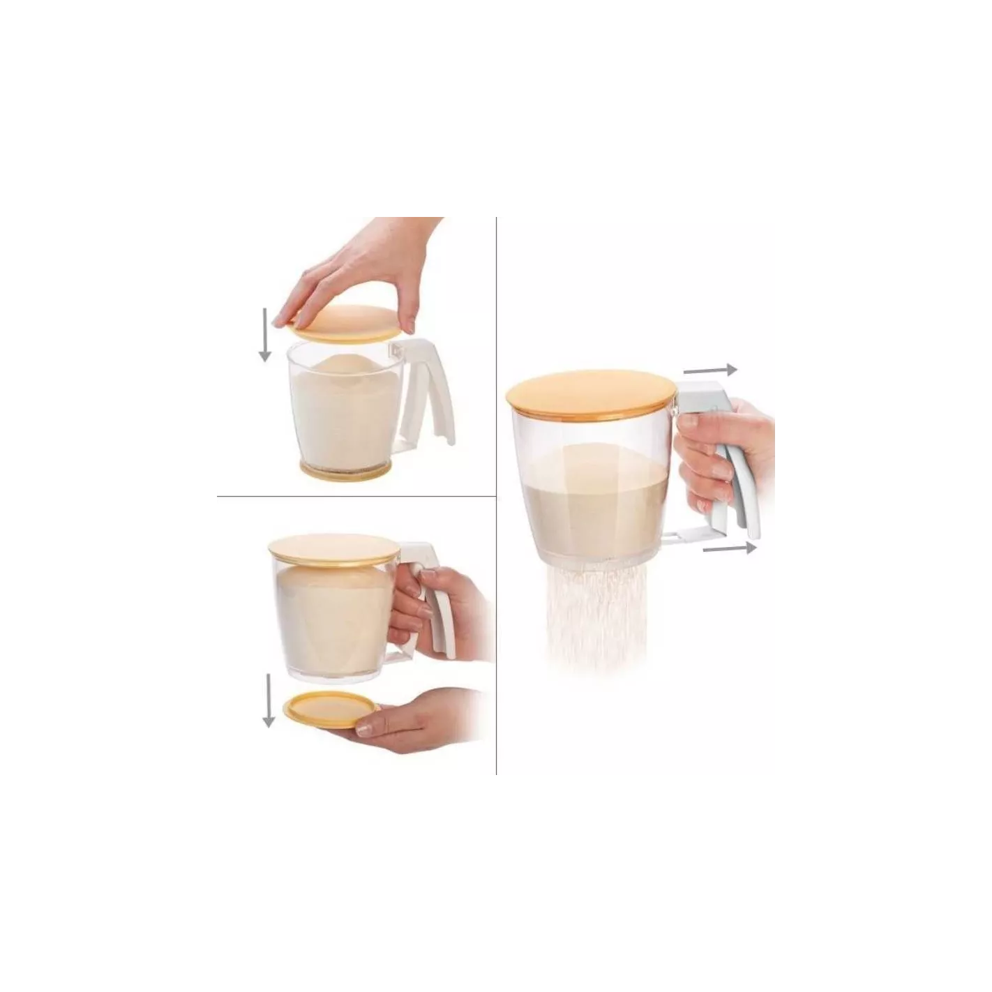 Diseñado para tamizar y airear harina y otros ingredientes secos, garantizando texturas más finas y homogéneas en las preparaciones culinarias. Su mecanismo facilita un proceso rápido y eficiente, convirtiéndolo en una herramienta esencial para reposteros, panaderos y aficionados a la cocina.DIAMETRO: CENTIMETROS = 11.5