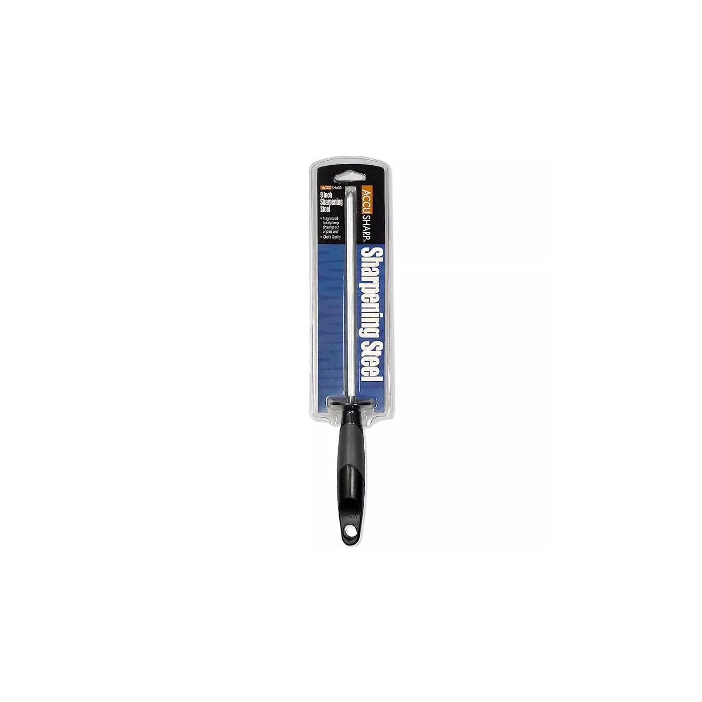 AccuSharp realinea el filo de la cuchilla manteniendo todos los cuchillos domésticos debidamente afilados. La superficie de acero devuelve rápidamente el borde de una buena cuchilla en alrededor de 10 golpes. El mango de goma sobre moldeado garantiza un agarre seguro y el protector del cuello mantiene las manos a salvo del camino.