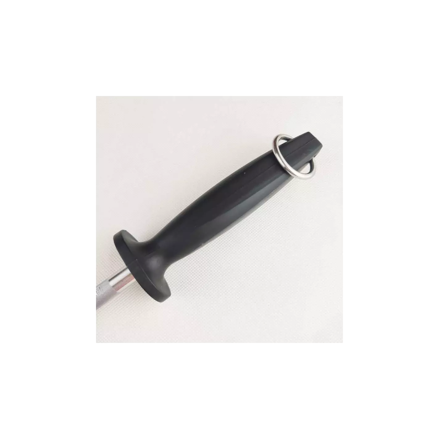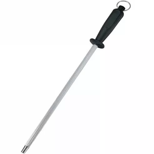 En lugar de comprar cuchillos nuevos cuando los actuales comienzan a desafilarse, afílelos con esta chaira para afilar y quedarán como nuevos. Seguro de usar y conveniente de almacenar, esta chaira es la herramienta ideal para mantener sus cuchillos y seguir cortando de la manera más fácil y segura posible.