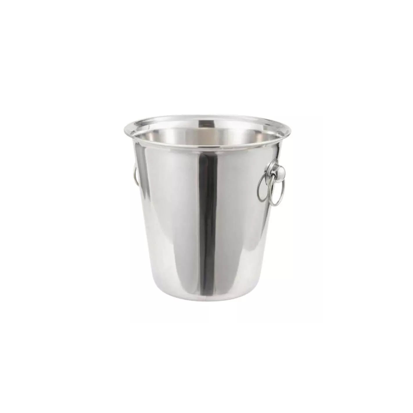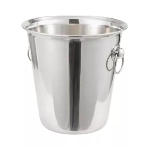 Balde para vino, fabricado en acero inoxidable con acabado tipo espejo. Ideal para servir exquisitos vinos y champañas o bien para entregar y servir hielo a la mesa en su restaurante u hotel. Para transportarlo fácilmente, este balde cuenta con argollas tipo perilla. Ideal para pedestal.