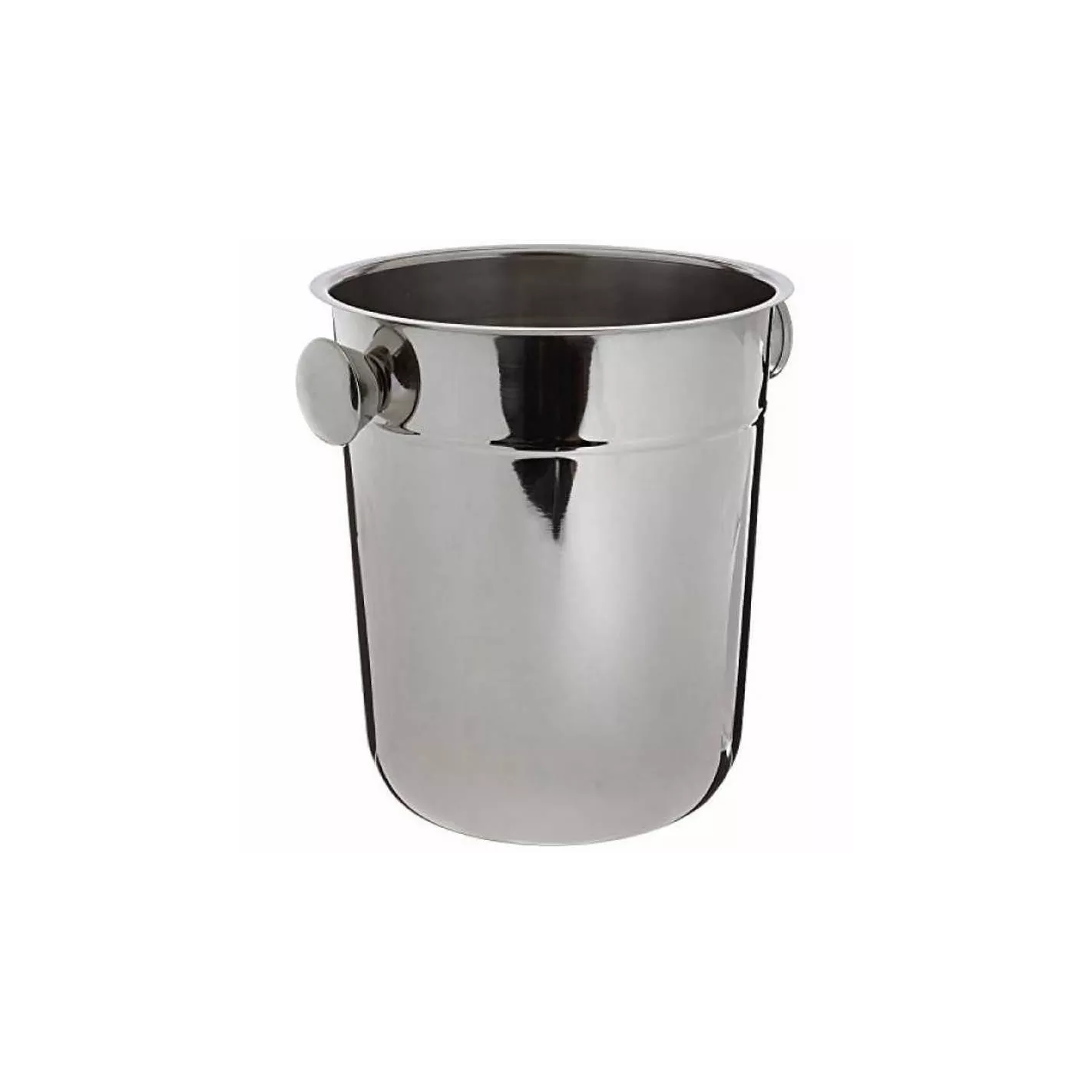 Balde para vino, fabricado en acero inoxidable con acabado tipo espejo. Ideal para servir exquisitos vinos y champañas o bien para entregar y servir hielo a la mesa en su restaurante u hotel. Para transportarlo fácilmente, este balde cuenta con dos cómodas manijas laterales tipo perilla. Ideal para pedestal.