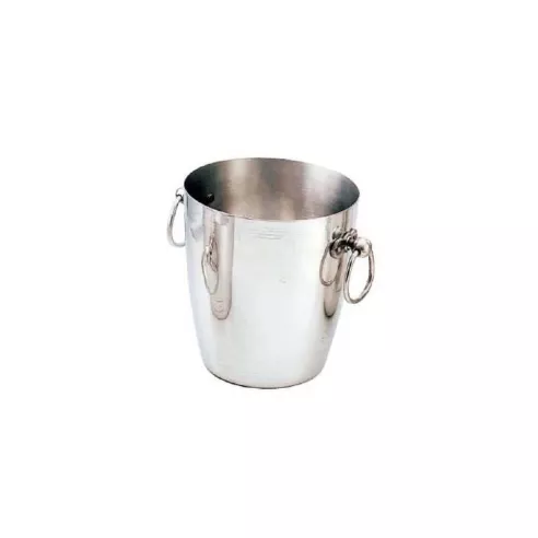 Balde para vino. Fabricado en aluminio. Acabado tipo espejo. Ideal para servir exquisitos vinos y champañas o bien para entregar y servir hielo a la mesa en su restaurante u hotel. Para transportarlo fácilmente, este balde cuenta con argollas tipo perilla. Ideal para pedestal. Capacidad: 8 cuartos.