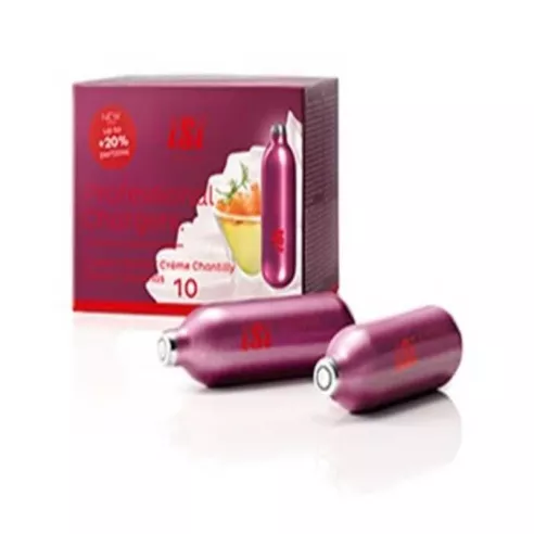 Para obtener la mejor calidad y sabor de su batidor de nata iSi, utilice los cargadores de nata están hechos específicamente para usar con los batidores de crema iSi y están diseñados para un ajuste perfecto con la cantidad justa de carga. El gas N2O en estos cargadores profesionales proporciona un rendimiento un 20% más alto que otros cargadores para más porciones por bote, lo que resulta en un ahorro del 20% en ingredientes y manipulación sin sacrificar el sabor de los ingredientes. Lo mejor de todo es que cada cargador está respaldado por pruebas de control de calidad al 100% para garantizar que no tenga fugas.
