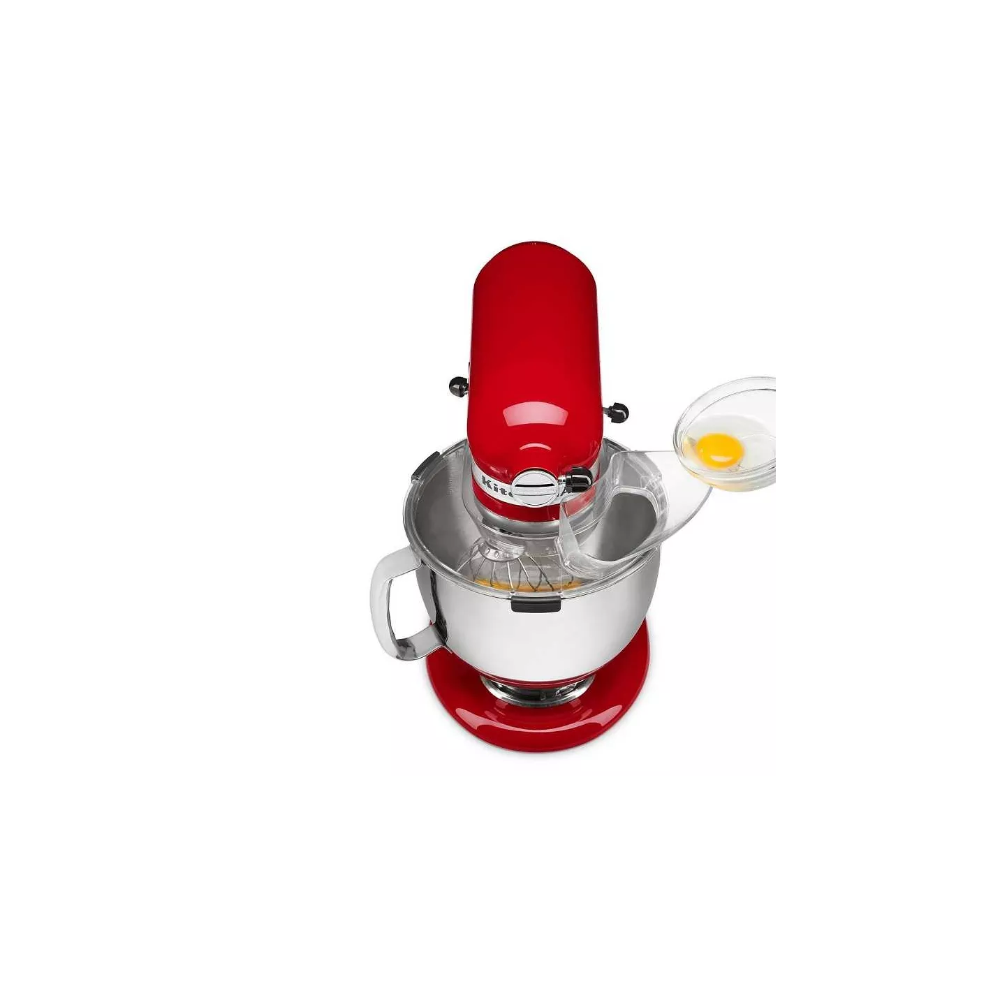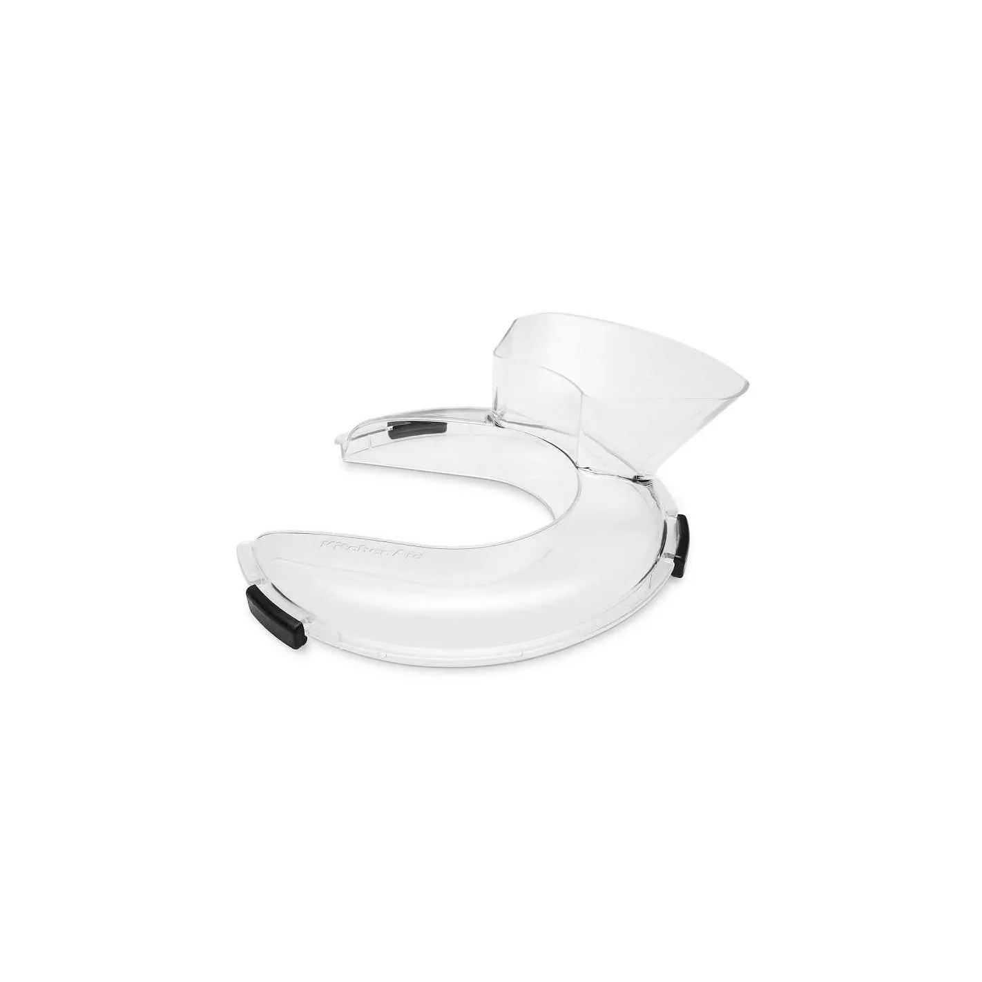 Presentamos el nuevo protector de vertido de ajuste seguro, diseñado para minimizar el desorden de la encimera mientras se mezcla. Cuenta con lengüetas de fácil ajuste que sujetan de manera segura el protector de vertido a su tazón para mezclar de acero inoxidable. Una gran corredera de ingredientes en ángulo que le permite agregar fácilmente los ingredientes cuidadosamente medidos.