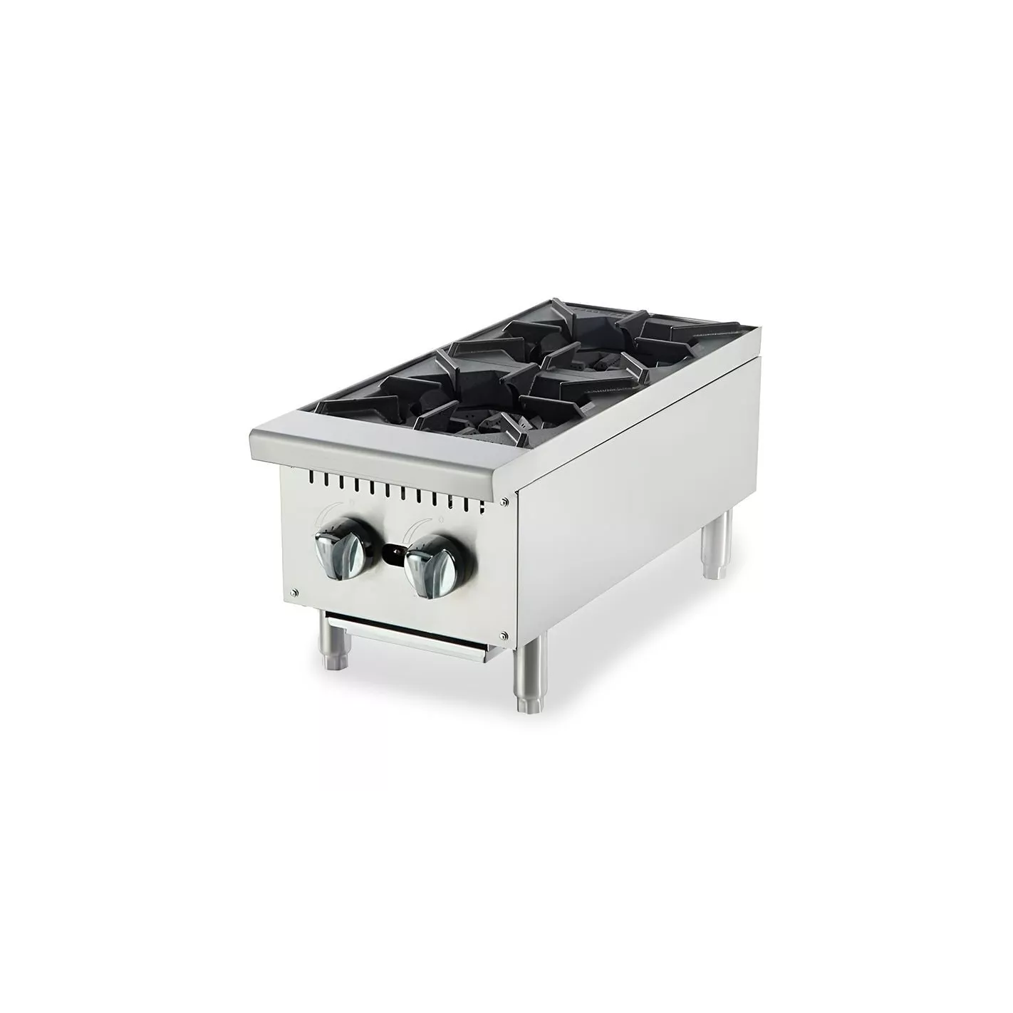 Ideal para comensales de ritmo rápido, puestos de comida y camiones de comida, esta unidad cuenta con quemadores potentes, un diseño duradero de acero inoxidable y conexiones versátiles de gas natural. Con 25,000 BTU en cada quemador, puede cocinar alimentos de manera eficiente para satisfacer la gran demanda en su restaurante. Con 2 parrillas de hierro fundido orientados en una alineación plana, puede deslizar fácilmente ollas y sartenes de un quemador a otro sin preocuparse por derrames.