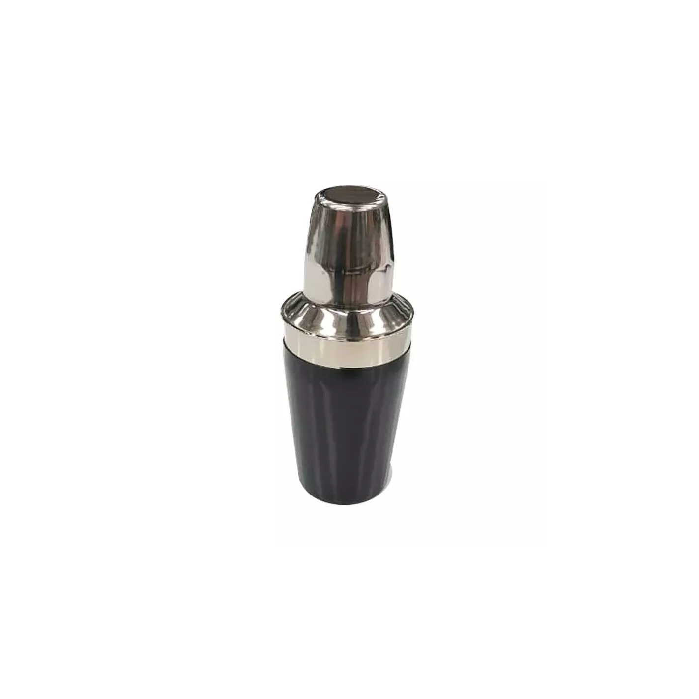 Coctelera con vinilo negro para bar de 16 onzas de capacidad. Utilizado como alternativa a la parte superior de la coctelera para que el cliente pueda ver el color y textura de la bebida que le están preparando. Esto convierte al servicio en todo un espectáculo.