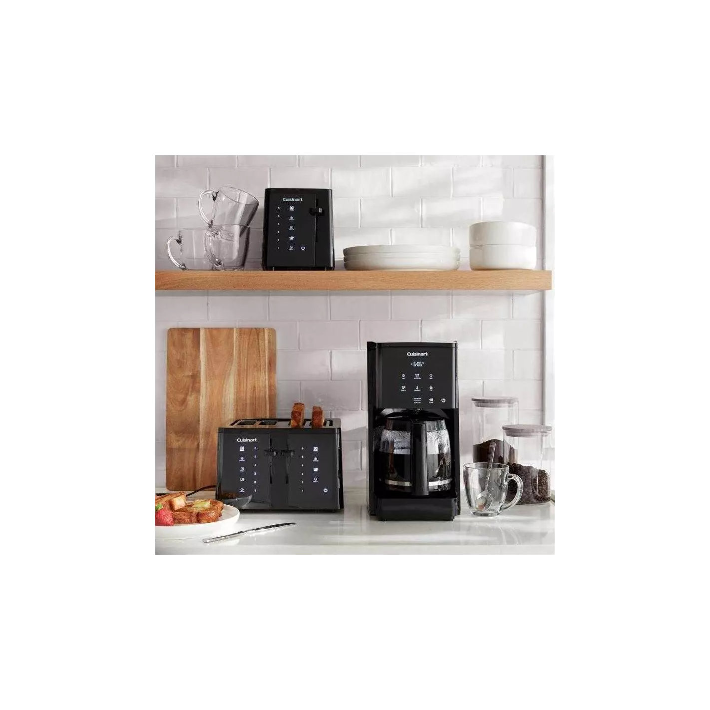 Cuisinart lanza su nueva línea Serie T con una cafetera que va a cambiar la dinámica de la cocina actual. Los controles intuitivos de la pantalla táctil permiten que los amantes del café toquen los íconos para elegir la hora de inicio, la hora de apagado, la cantidad de tazas y la configuración de concentración. Cuando la cafetera no está en uso, la pantalla LCD se apaga, creando una apariencia ultra elegante en su cocina. Simplemente toque el ícono de encendido para activar la pantalla cuando esté listo para preparar. Con la tecnología PerfecTemp, esta cafetera premium se prepara incluso más caliente y tiene dos filtros que protegen el rico sabor del café. Su excelente café y un aspecto completamente nuevo a las cocinas les encantará.