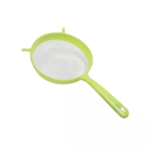 Excelente colador de cocina que sirve tanto para colar alimentos como pasta o arroz, o para tamizar los ingredientes secos en repostería, entre otros usos. Este utensilio está fabricado en acero inoxidable de primera calidad y plástico súper resistente.