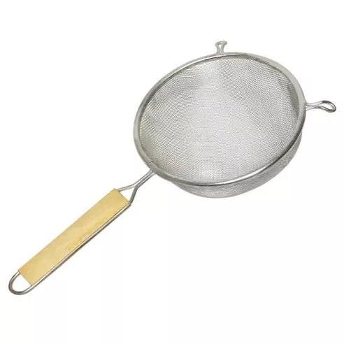 Este colador de malla fina es ideal para colar salsas gruesas o tamizar ingredientes secos para hornear. Está diseñado con una red cóncava para atrapar fácilmente la materia gruesa y rápidamente drenar el exceso de líquidos. Gracias a su construcción de acero inoxidable, este filtro es lo suficientemente fuerte como para resistir el uso intensivo sin oxidarse ni deformarse. Para mayor comodidad, este filtro tiene un mango de madera para un agarre cómodo.