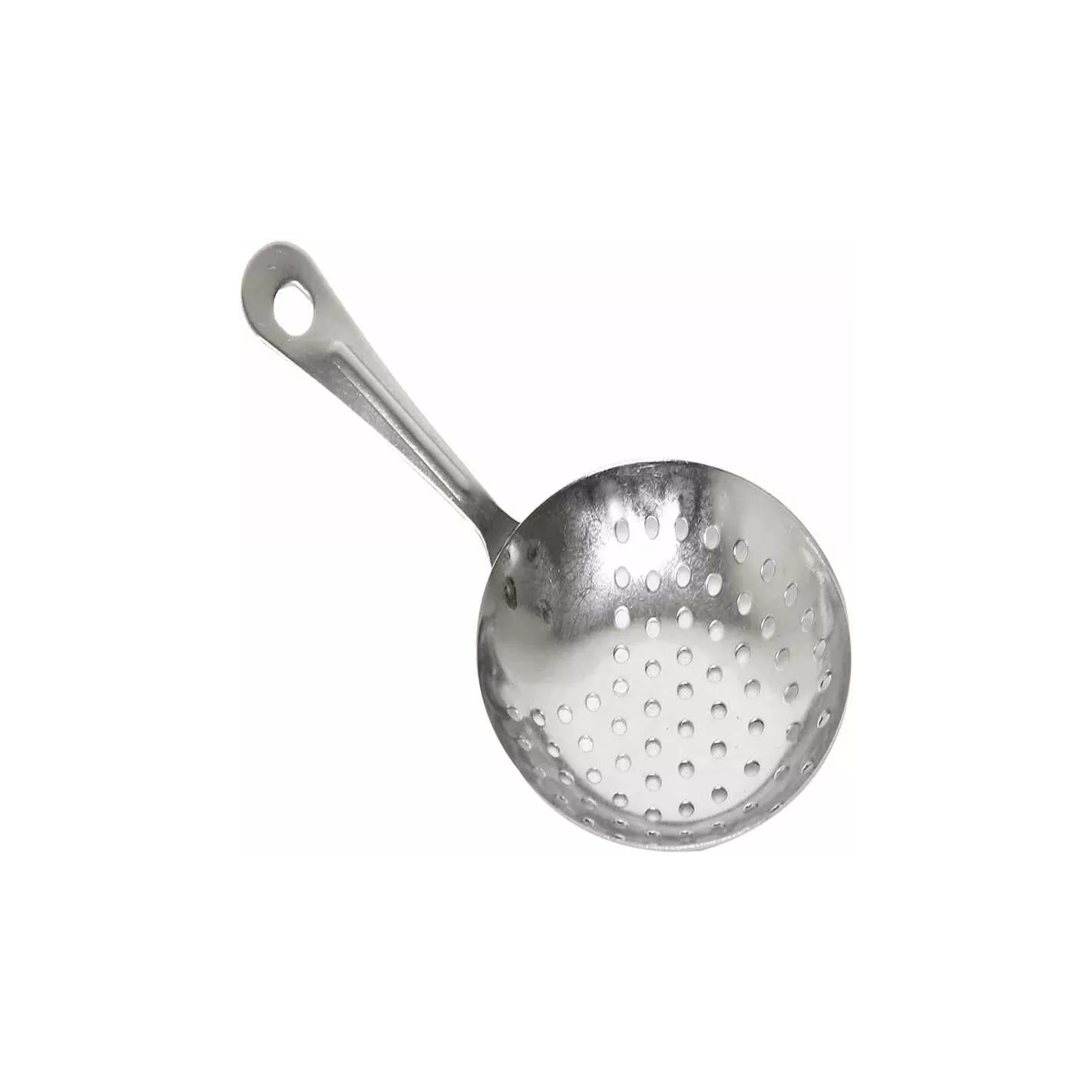 Perfecto para servir bebidas especiales, el Thunder Group SLJS031 Julep Strainer es una gran adición a cualquier estación de bar de ritmo rápido. Diseñada con una superficie cóncava, ancha y perforada, esta pieza filtra eficientemente las hojas de menta, las semillas de pulpa y el hielo de los cócteles. Hecho de acero inoxidable, este filtro es resistente a la oxidación y resistirá años de uso. Para mayor comodidad, este colador julep es fácil de limpiar y está construido con un mango cómodo y un orificio para colgar para el almacenamiento.