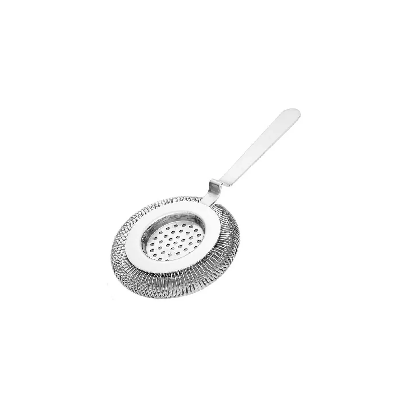Este colador combina los mejores materiales con el conocimiento del mejor barman del mundo. Este colador se encuentra dentro de la lata donde puede retener el hielo y permite un vertido limpio desde el borde del agitador. En el mango hay un chupete que ayuda a que el colador se mantenga en el borde de la lata.