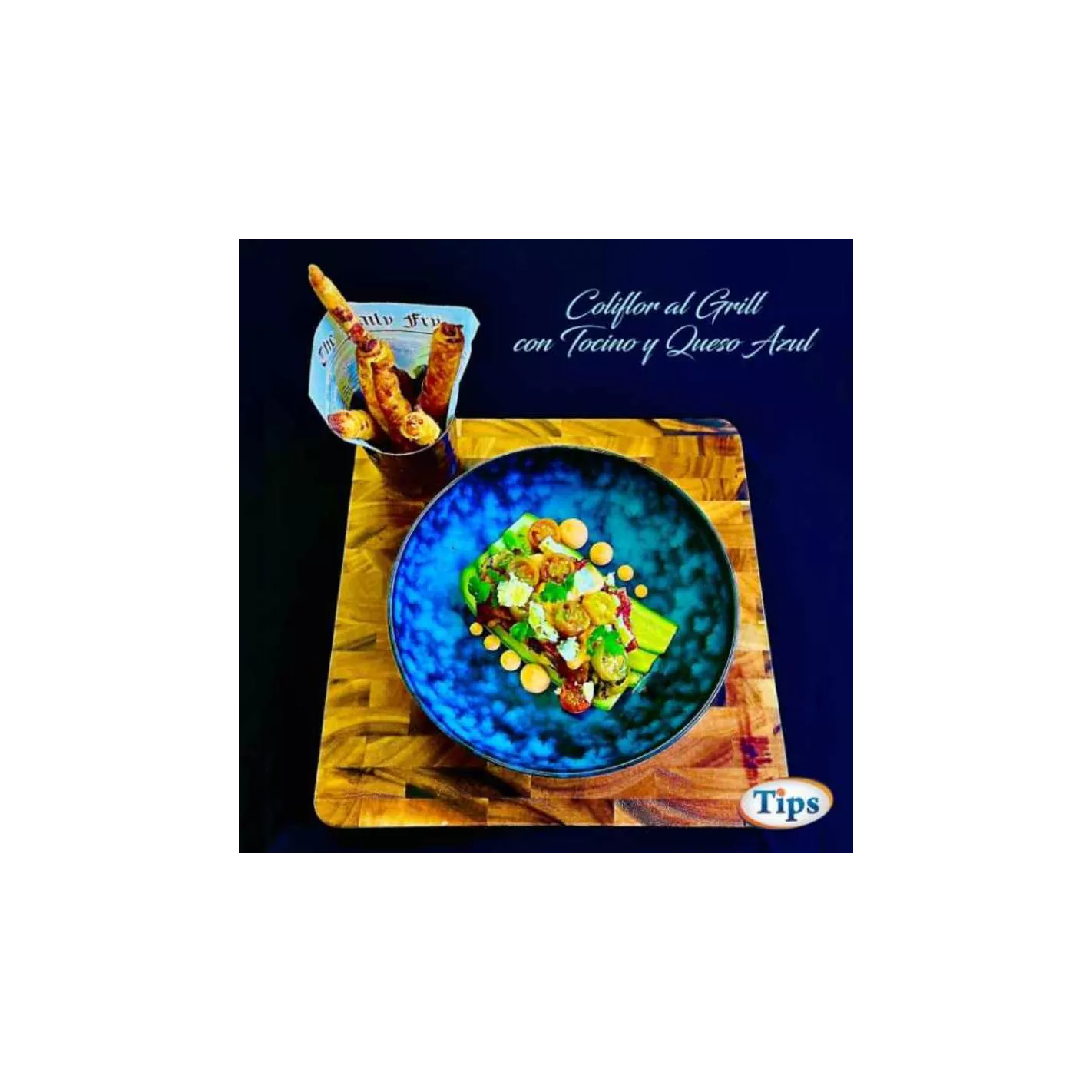 7-Colocar de base el zuchiny después la coliflor, tocino cortado en dados, tomates, aderezo y el queso al final en trozos pequeños.