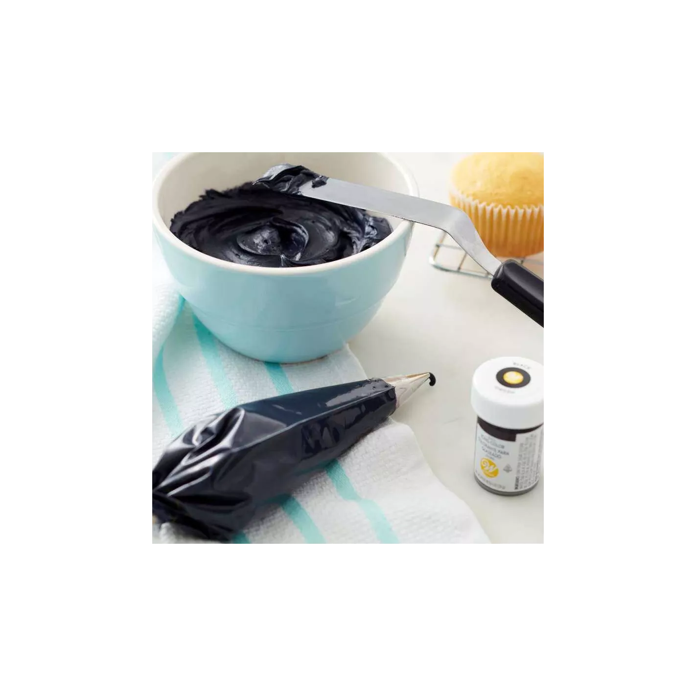 Este color de glaseado negro a base de gel le brinda un color verdadero y rico que nunca cambiará la consistencia de su masa para pasteles, crema de mantequilla o glaseado real. También puede usarlo para teñir fondant blanco y pasta de goma. Mezclalo con otros colores para lograr un tono que sea tuyo. Gracias a nuestra fórmula con una pequeña cantidad de producto logre el tono deseado.