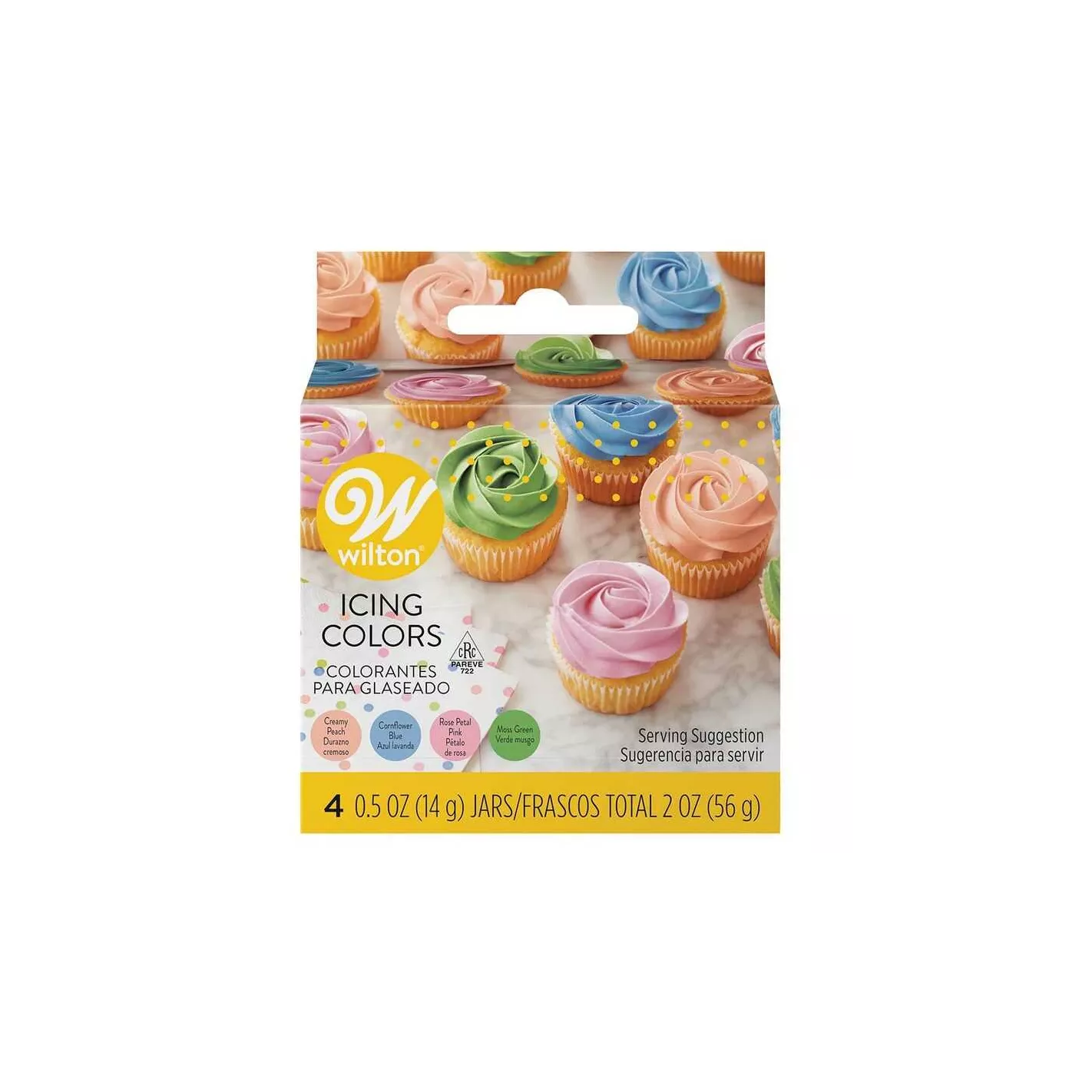 Agregue un poco de color a su masa de pastel, glaseado y más con estos colores concentrados de gel pastel. Set de 4 colores pastel: Pétalo Rosa, Melocotón Cremoso, Verde Sauce y Azul Aciano en tarros de 1/2 onza cada uno. Certificado kosher.