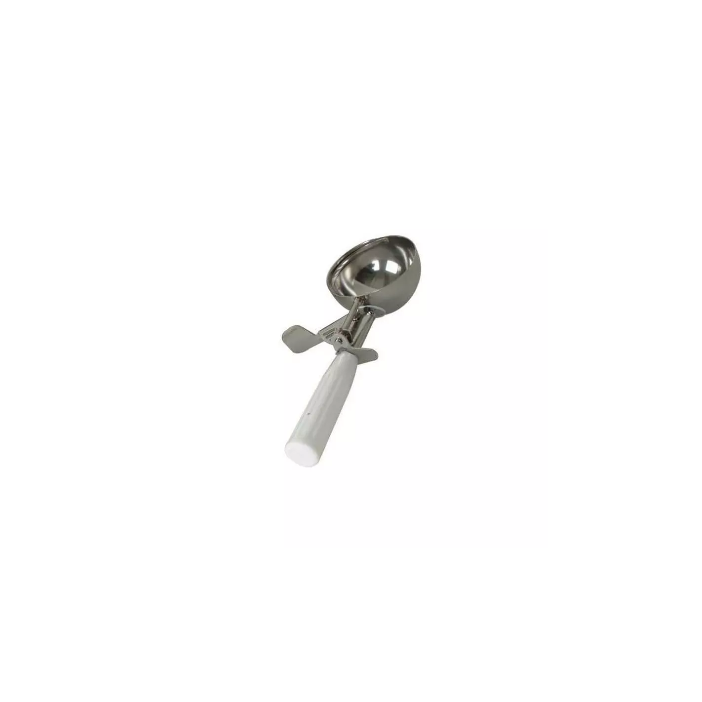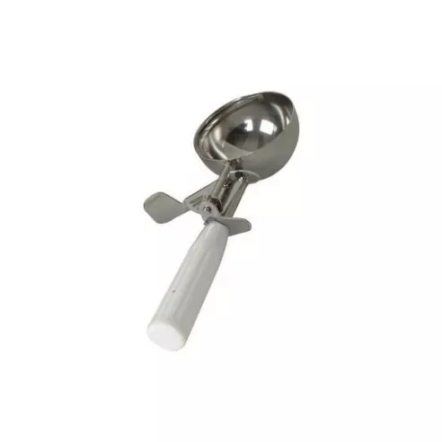 Ya sea que esté sirviendo helado o sirviendo porciones, la conera de helado blanco te ayudará a hacer el trabajo. Esta cuchara multiusos tiene un tazón liso y un mecanismo de presión con el pulgar para expulsar fácilmente bolas de comida limpias y uniformes. Hecho en acero inoxidable, esta conera es fácil de limpiar y no se dobla ni se oxida. Gracias a su mango de plástico blanco, esta conera proporciona un agarre cómodo que reduce la fatiga de la mano por el uso prolongado.