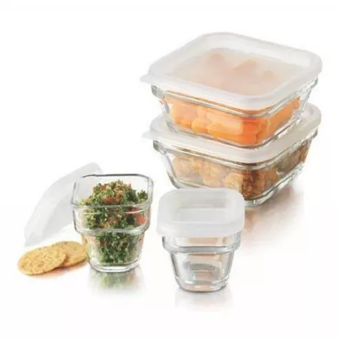 El set de ensaladeras cuadradas de 8 piezas tiene durabilidad, diseño, transparencia. Contenedor resistente apto para el microondas con un formato anatómico para evitar resbalones.
