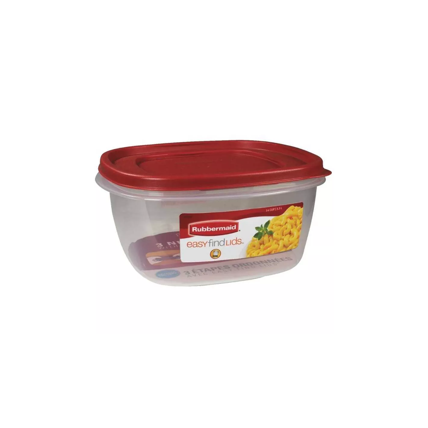 Este contenedor de almacenamiento de alimentos de 14 tazas de Rubbermaid presenta una forma cuadrada para una utilización óptima del espacio. La tapa se une a la base del contenedor para que siempre pueda encontrar la tapa correcta. El conveniente diseño de anidación ocupa un espacio mínimo en el gabinete o el refrigerador. Hecho de plástico grueso y duradero. Aptos para lavavajillas, microondas y congelador.