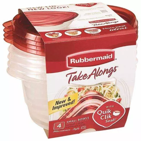 Almacene, organice y empaque una variedad de alimentos con estos recipientes de almacenamiento de alimentos redondos de 3.2 tazas de Rubbermaid TakeAlongs. El tamaño de la porción los convierte en contenedores ideales para la preparación de comidas, ideales para almuerzos y refrigerios, así como para la despensa y el almacenamiento artesanal. El chasquido de las tapas Quik Clik Seal te ayuda a saber que están bien cerradas, y las marcas de graduación te ayudan a medir cuidadosamente las porciones. Estos recipientes apilables sin BPA son aptos para el congelador y tienen bases aptas para microondas.