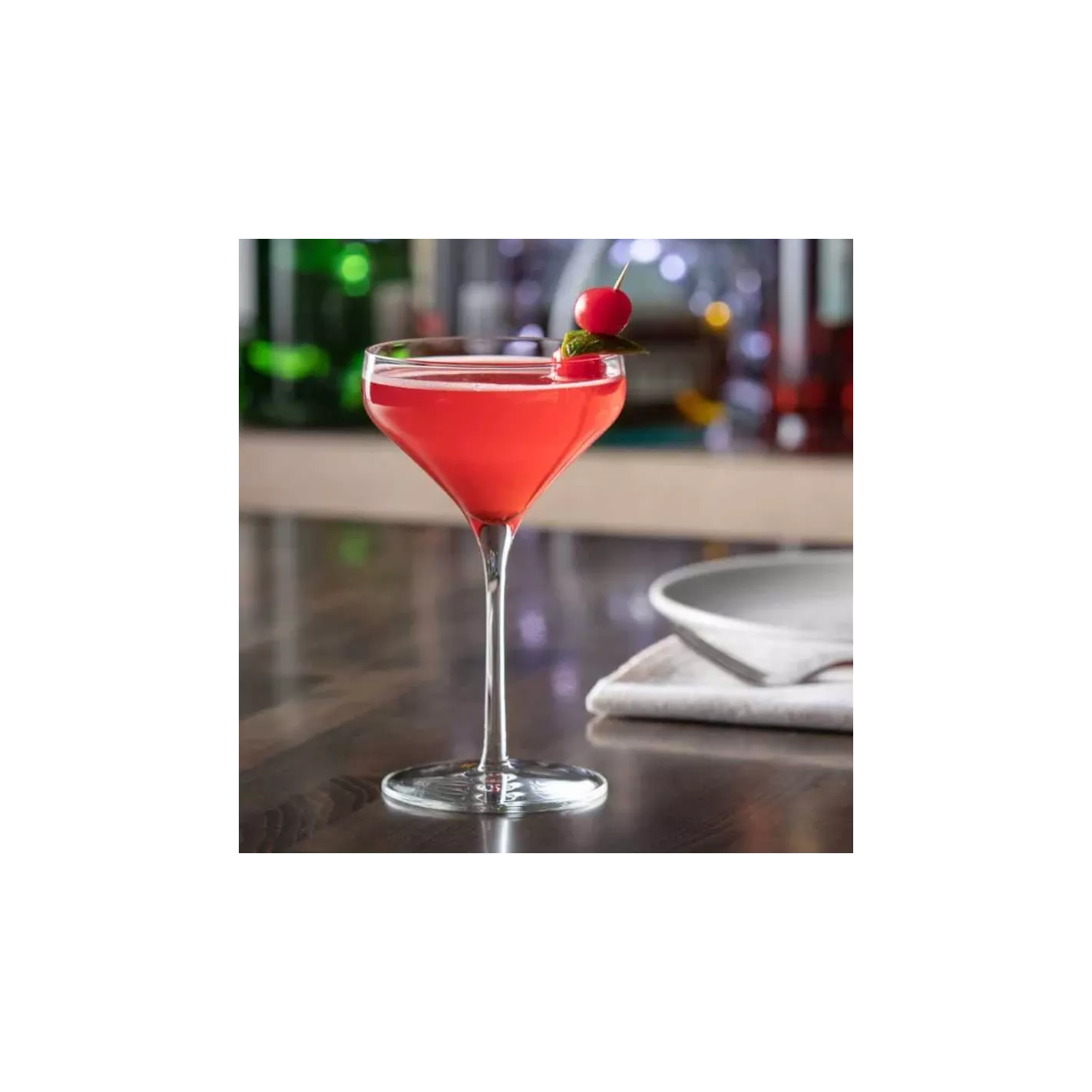 Las paredes laterales delgadas son elegantes, pero duraderas, lo que proporciona una mayor resistencia mecánica. Al mismo tiempo, el borde ultrafino sin cuentas crea una presentación exquisita para cócteles, aperitivos y postres servidos en copa.