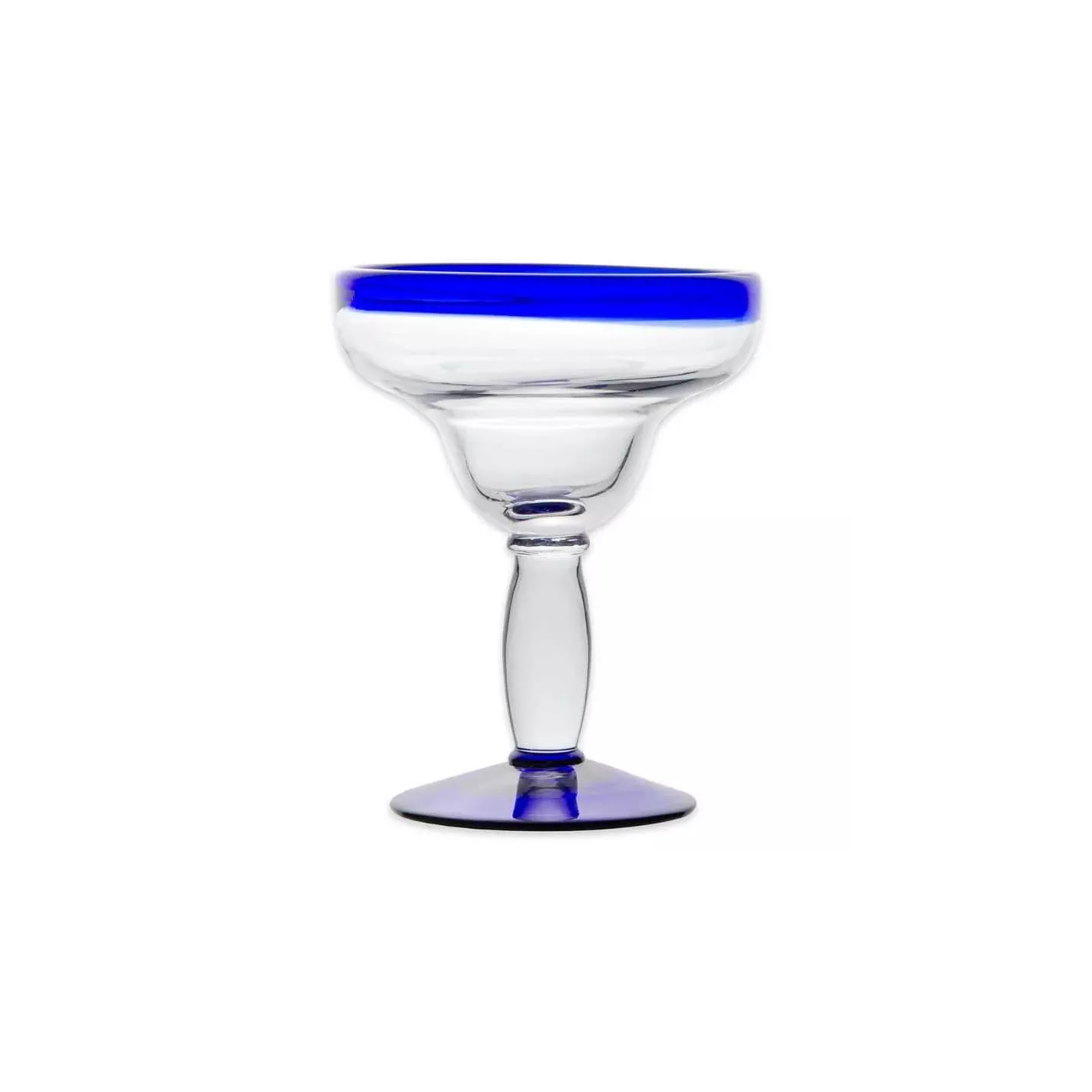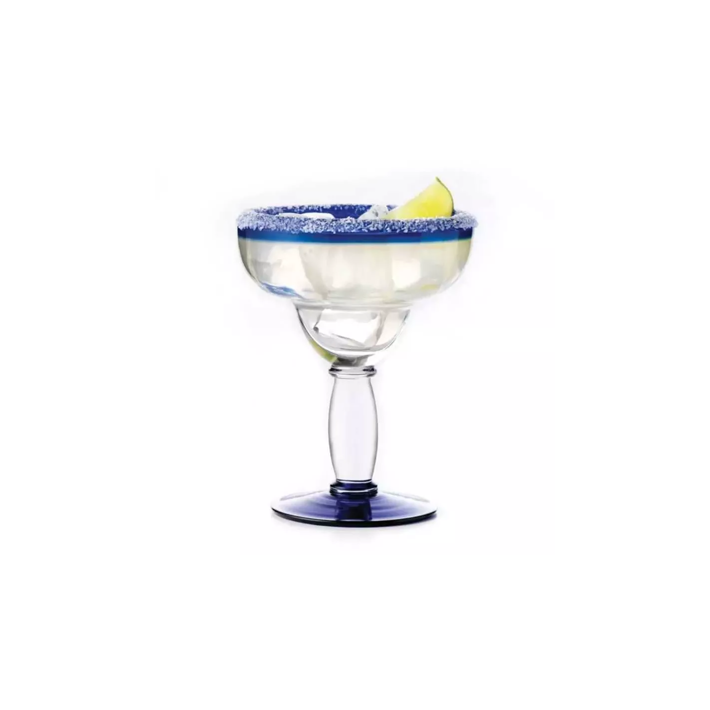 ¡La copa de margarita está en su mejor momento! Con un borde azul cobalto vibrante, este color trasciende el azúcar y crea una pantalla radiante y texturizada. La parte superior ancha de este vaso proporciona una proporción perfecta.