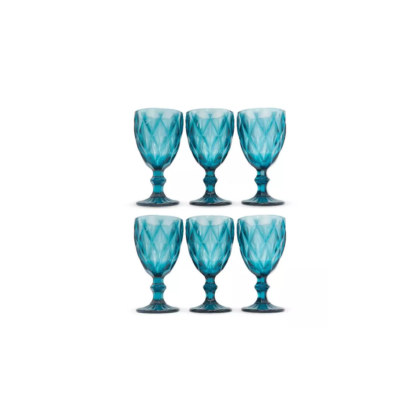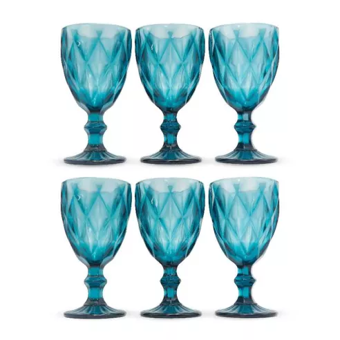 Copa de Vidrio para Vino de 300 Mililitros de Color Azul, Set de 6 Unidades TIPS KFG-002BL/HJ