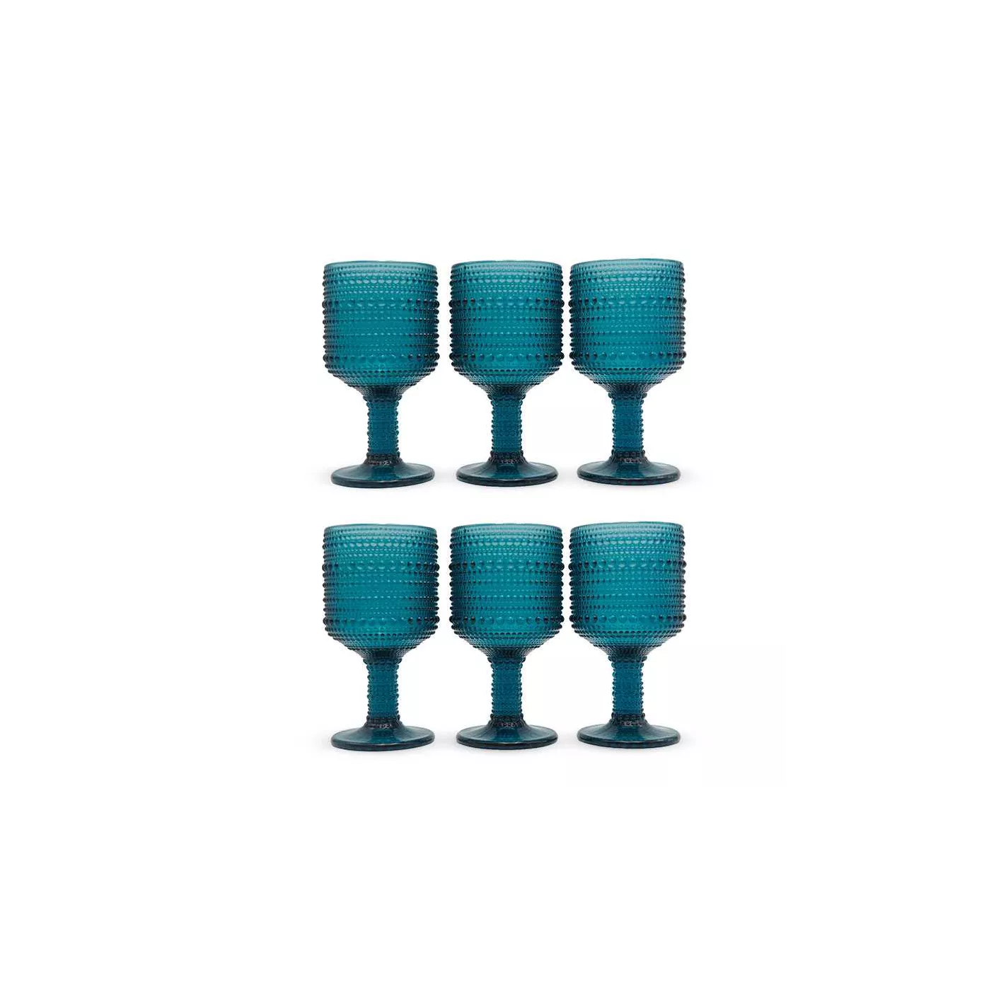 Copa de Vino de Vidrio de 240 Mililitros de Color Azul, Set de 6 Unidades TIPS KFG-007BL/HJ