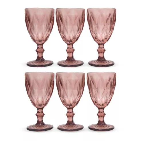 Copa de Vino de Vidrio de 300 Mililitros de Color Morado, Set de 6 Unidades TIPS KFG-002PR/HJ