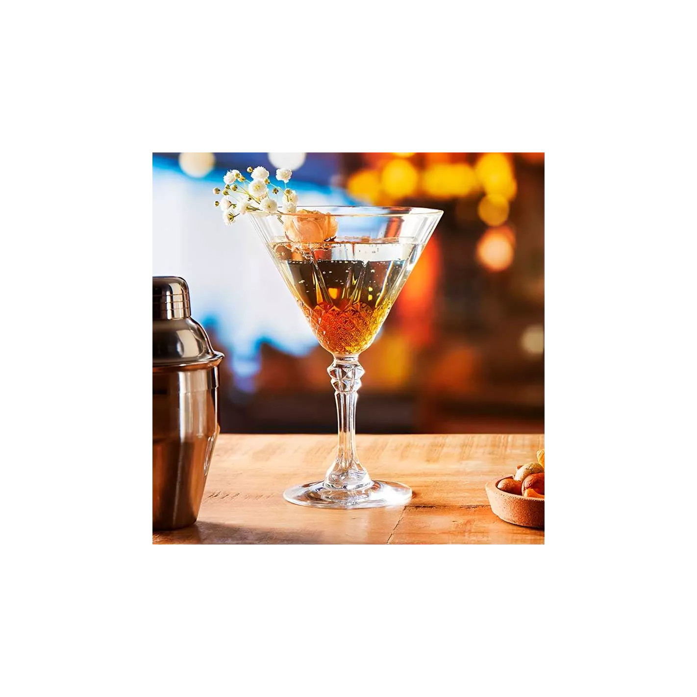 Copa perfecta para disfrutar de tu Martini favorito con estilo y distinción. Los lados con pendientes pronunciadas evitan que los ingredientes se separen y también sirven para sostener un palillo de dientes o aceitunas en una brocheta de cóctel.