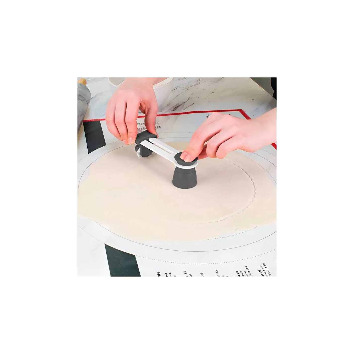 ¡Tan fácil como un pastel! Medir y cortar la masa de tarta nunca ha sido tan sencillo y preciso como con el cortador de precisión para masa de tarta de Tovolo. ¡Usa este compás de repostería para cortar masas de tarta perfectas en todo momento! Las ruedas de repostería de nailon cortan fácilmente la masa, creando un círculo perfecto cada vez que giran alrededor de la perilla central fija. La regla está grabada en el brazo giratorio y la guía deslizante se bloqueará en su lugar. Encuentra el tamaño de tu molde para tarta, luego desliza la guía hasta el tamaño apropiado. La regla crea masas de tarta perfectas para moldes para hornear de 2" a 14".