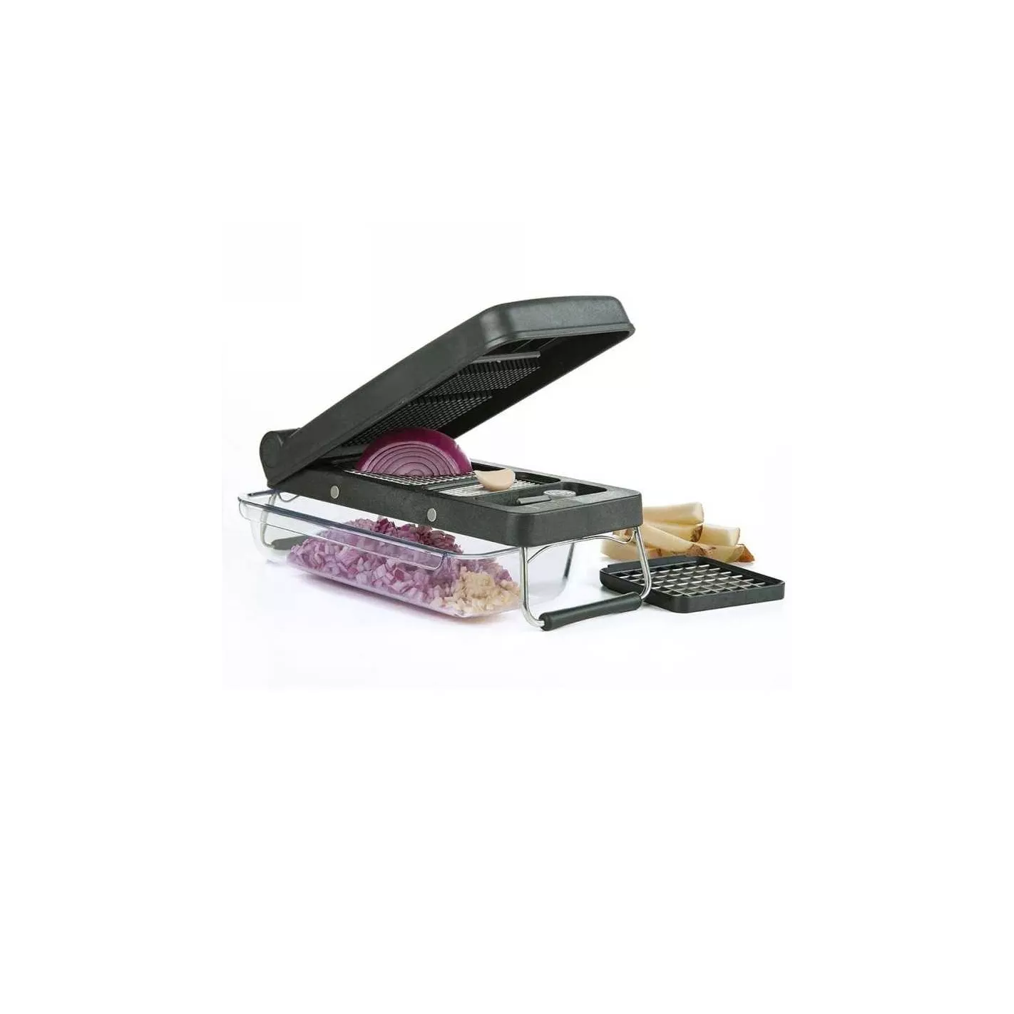 Corta hermosas espirales y cintas de verduras con el espiralizador profesional. La base ergonómica inclinada y el mango de silicona permiten obtener resultados sin esfuerzo. Los ajustes de la hoja giratoria ajustable se integran de forma segura sin piezas sueltas.