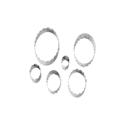 Con el cortador doble ovalado es fácil crear formas divertidas para tus pasteles y cupcakes de fondant. Simplemente despliegue fondant o pasta de goma, presione hacia abajo con los recortes de acero estándar y retírelo.