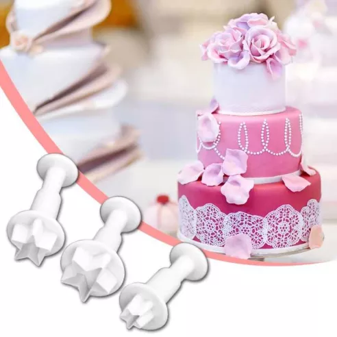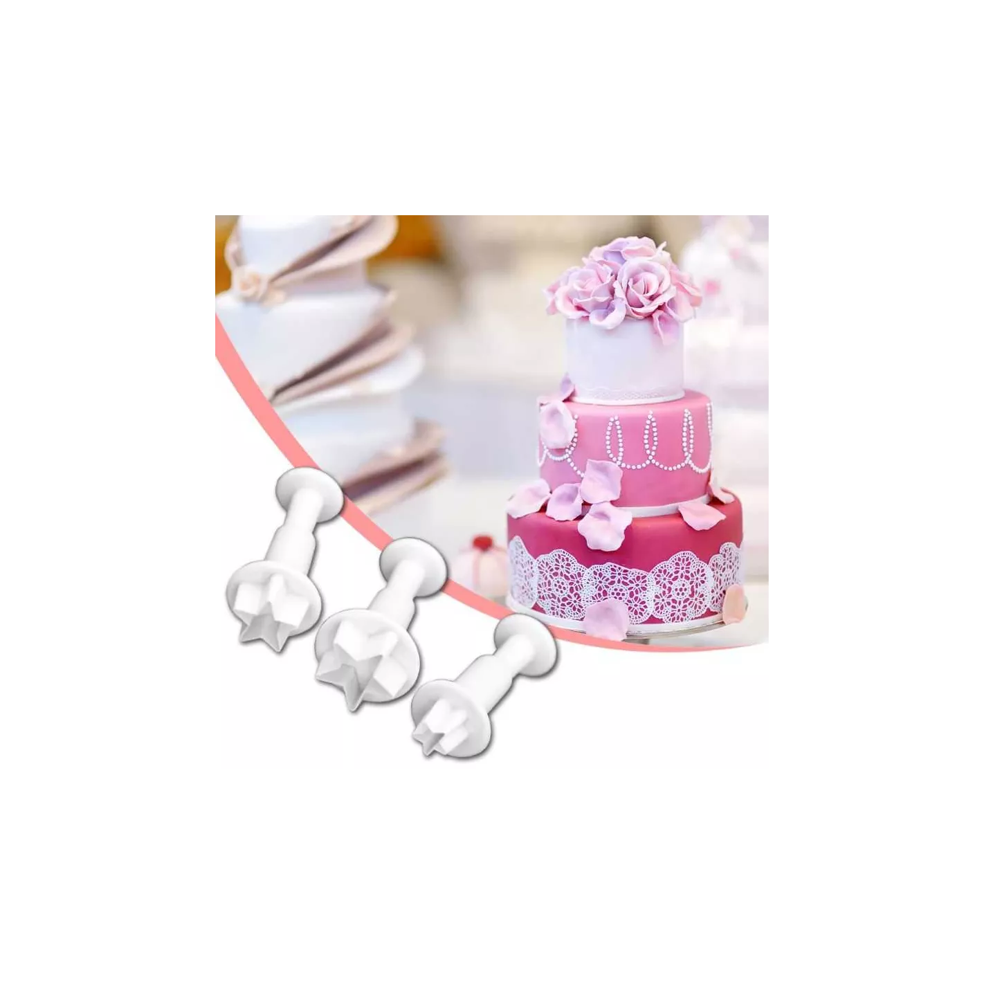Añade algunas decoraciones profesionales a tus deliciosos pasteles con este juego de tres cortadores de émbolo en forma de estrella, con un mecanismo de resorte que corta, graba y libera el glaseado para producir formas de estrella perfectamente formadas y consistentes con un patrón intrincado. Ideal para usar con pasta de azúcar, fondants enrollados, glaseado real, gumpaste, mazapán y arcillas no comestibles.