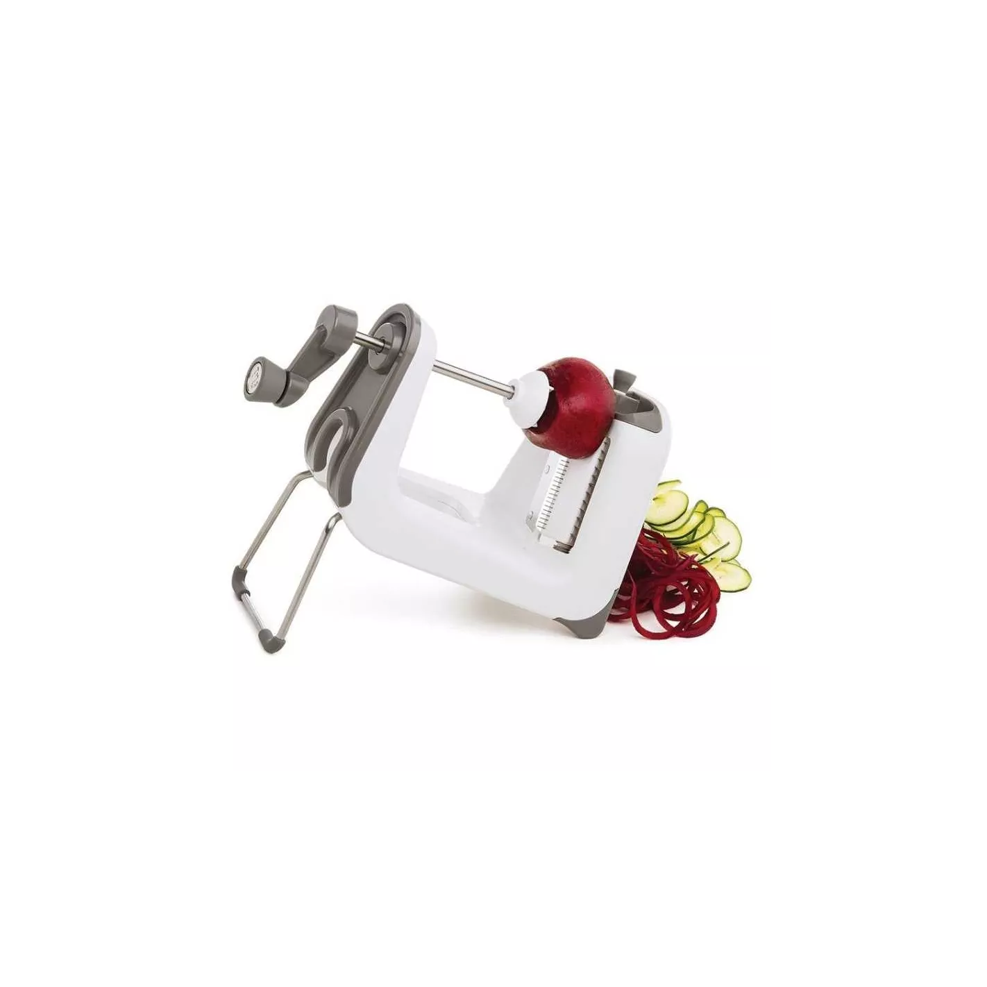 Corta hermosas espirales y cintas de verduras con el espiralizador profesional PL8. La base ergonómica inclinada y el mango de silicona permiten obtener resultados sin esfuerzo. Los ajustes de la hoja giratoria ajustable se integran de forma segura sin piezas sueltas
