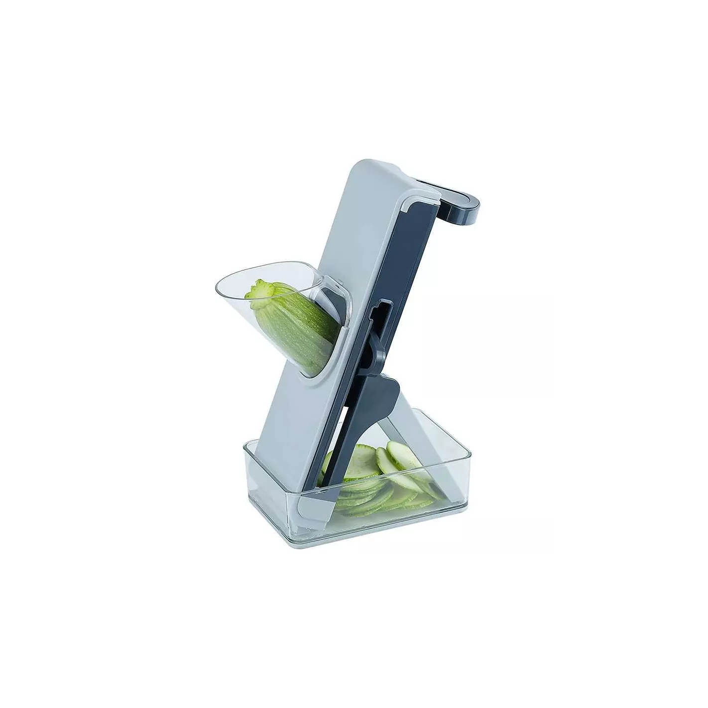 La cortadora de tipo prensa mantiene la mano lejos de la cuchilla, simplemente coloca la comida y presiona. Además, la cortadora está hecha de material plástico ABS de alta calidad sin BPA, que se puede utilizar de forma segura. El cortador de verduras viene con un recipiente de almacenamiento para atrapar alimentos caídos mientras trabajas. Cubre y almacena en el refrigerador como un crujiente para mantener las sobras frescas. También puedes poner todas las piezas en la caja para mantener tu cocina ordenada y reducir en gran medida el espacio de almacenamiento.